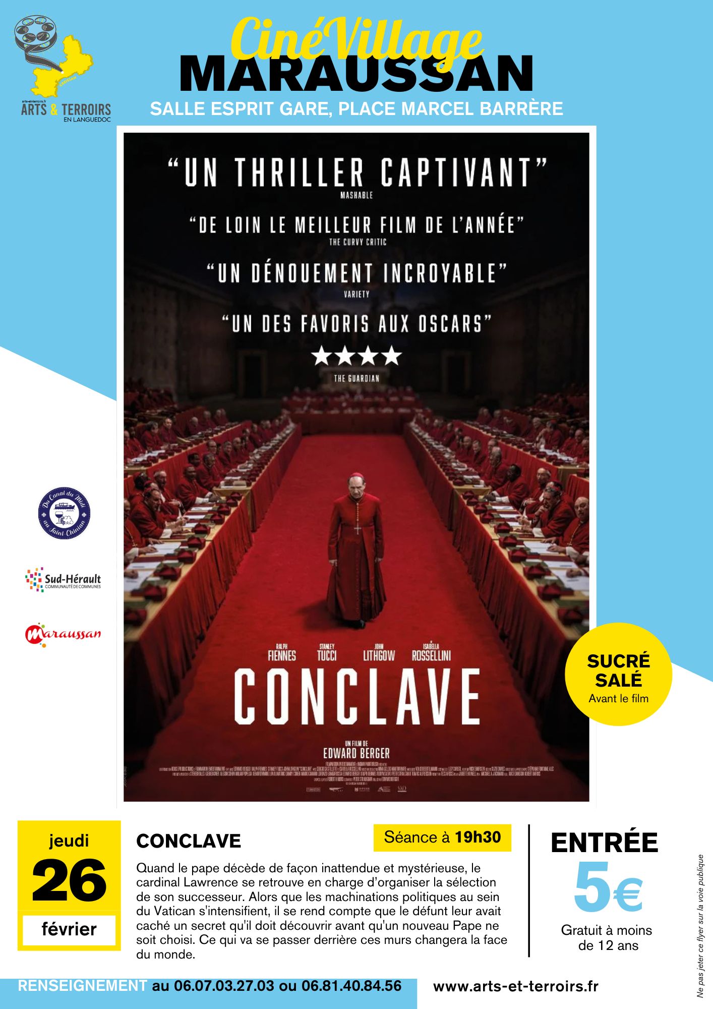 Cinévillage à MARAUSSAN – CONCLAVE : thriller de 2024