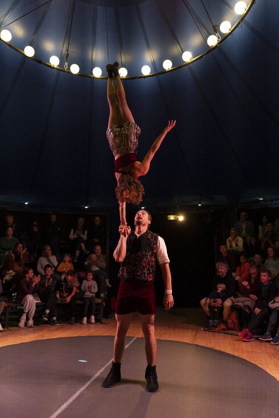 C’est un petit chapiteau rouge, accompagné de quelques caravanes, qui vous donne la bienvenue. Sous la toile du chapiteau, un univers mystérieux et enveloppant vous accueille. Des vibrations profondes vous invitent à tendre l’oreille pour découvrir toutes sortes d’histoires, dévoilées au travers des corps agiles et de la parole. Histoires de roi, d’enfants, de voyages… Fil de fer, lancer de couteaux, marche sur le verre, portés acrobatiques. Au fil de cette veillée de contes, les corps et les mots s’associent pour faire grandir les petits… et rapetisser les grands !Spectacle de cirque conté par laCie Cirque de la GuirlandeInfos et résa. : 04 67 18 54 92 – culture@frontignan.fr – Tout Public – Entrée libre sur réservation, ouverture des réservations le 5/01.
