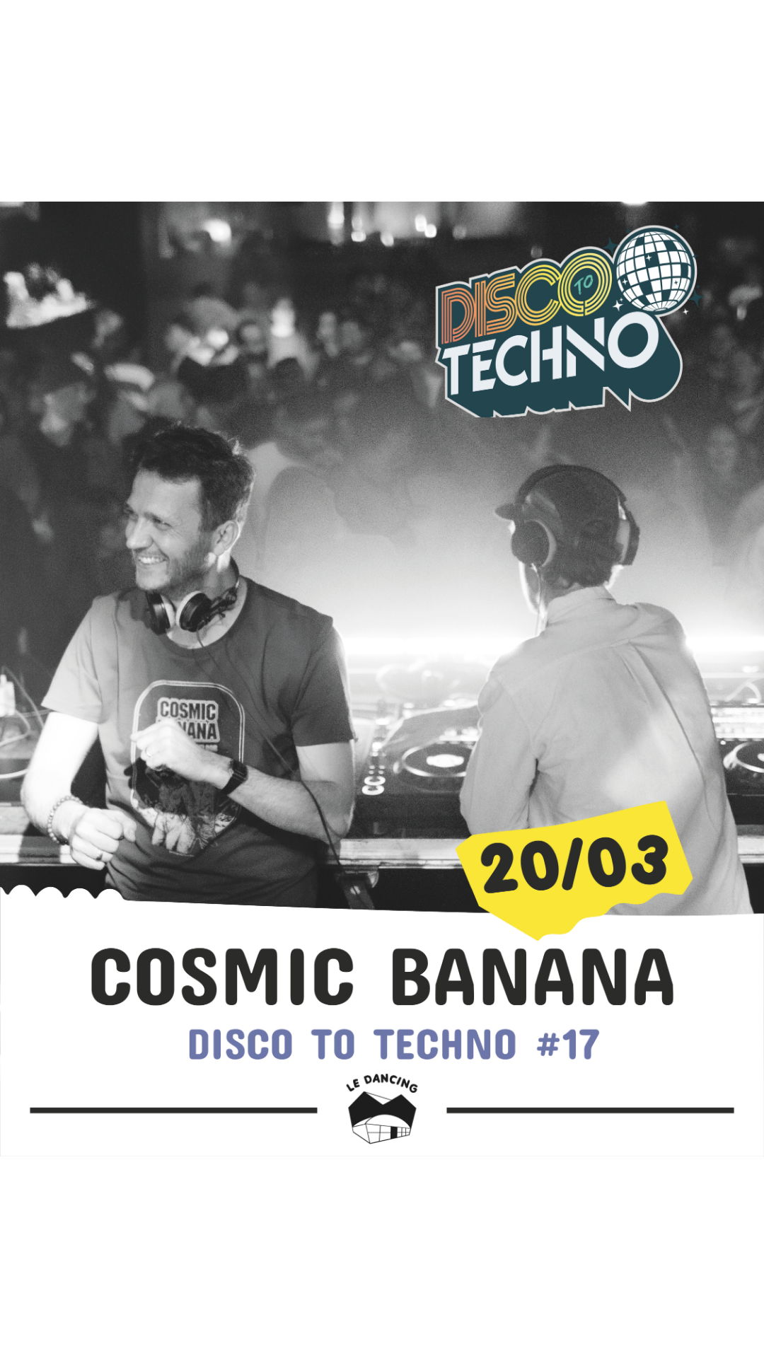 Prêt.e.s à embarquer dans la navette Cosmic Banana ?Une nouvelle Disco to Techno décollera du Dancing vendredi 20 mars à 19h30, pour fêter le premier jour du printemps !Sur la piste : Disco / House / Electro / Techno, la recette parfaite pour mettre tout le monde en orbite.Informations pratiques :Ouverture des portes : 19h30Bar & restauration sur place