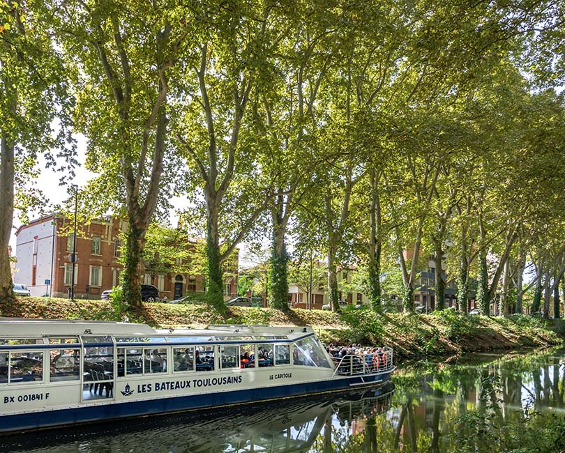 Partiendo del puerto de Saint-Sauveur y deslizándose por el Canal du Midi, la gabarra roza tres siglos de historia. Bajo los plátanos, el agua susurra la audacia de Riquet y los pasos de los barqueros.