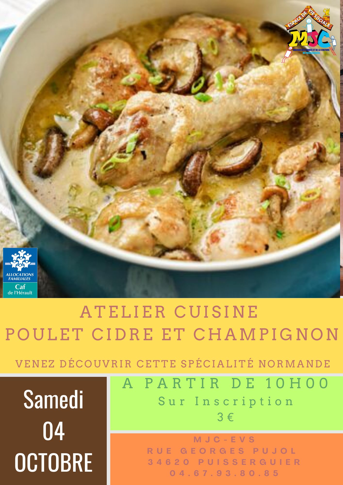 Le 4 octobre : Atelier cuisine : poulet cidre et champignon