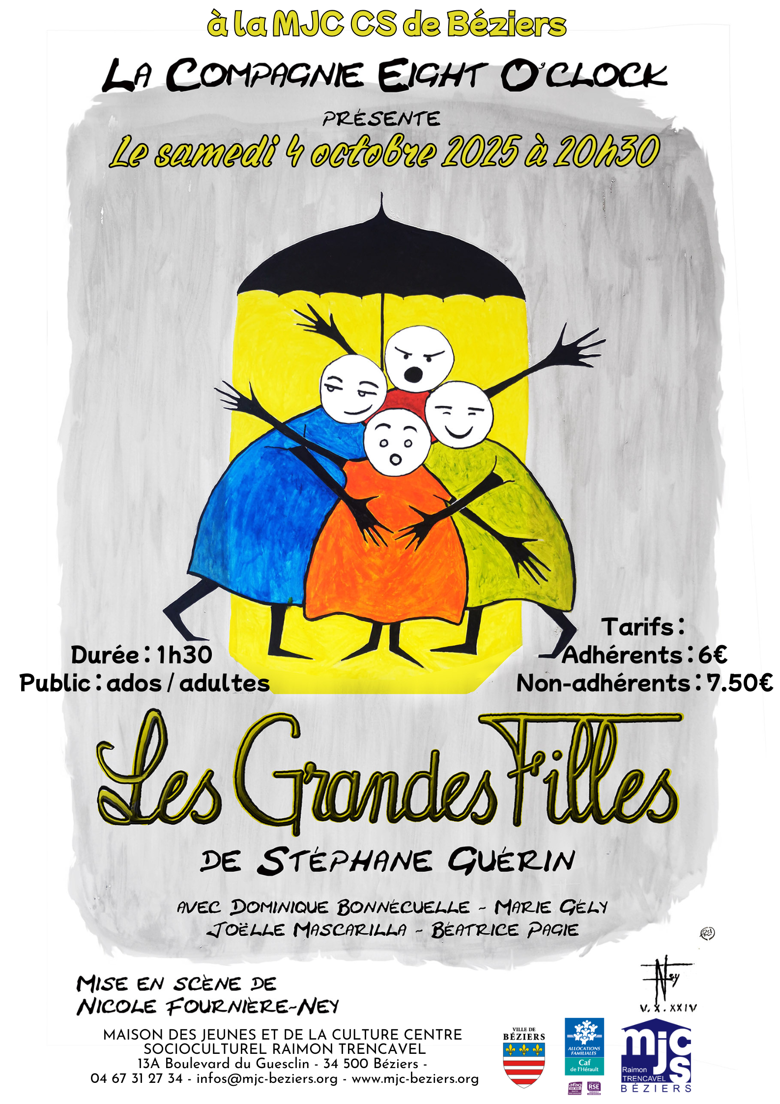 À l’orée de la vieillesse et de ses sentiers ombrageux, quatre Grandes Filles iconoclastes se délestent des lourdeurs de leurs vies passées. Elles se jouent des convenances, convoquent leur jeunesse, leur histoire et laissent jaillir les petites filles joueuses qui sommeillent encore en elles. Et, au bout du chemin, une découverte inattendue les attend.