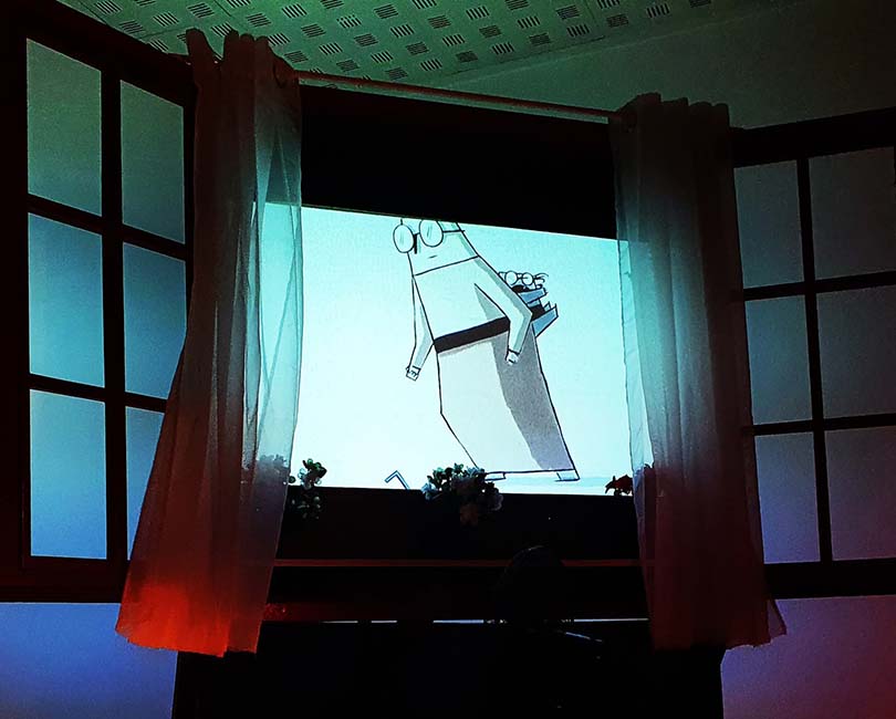 Creadores de espectáculos visuales insólitos, los Vidéophages iluminan la capilla de La Grave con proyecciones artísticas desde las 19:00 hasta medianoche, tanto en el interior como en las fachadas. Los peces de colores llaman a los transeúntes en los muros exteriores, mientras que las sirenas nadan bajo la cúpula. Para la ocasión, se instalan en la capilla varias instalaciones audiovisuales emblemáticas: L’Aparté, un dispositivo cinematográfico inmersivo y poético reconocible por su bañera y su ventana, la instalación participativa de espejos Zébrez-vous, La petite cage y su elefante volador, y Les lanternes animées de Christophe Jacquemart, que cobran vida gracias a bucles visuales compuestos por fragmentos de vidas filmadas en Super 8. Todos ellos dispositivos lúdicos que cuestionan el formato de proyección y el lugar del espectador.