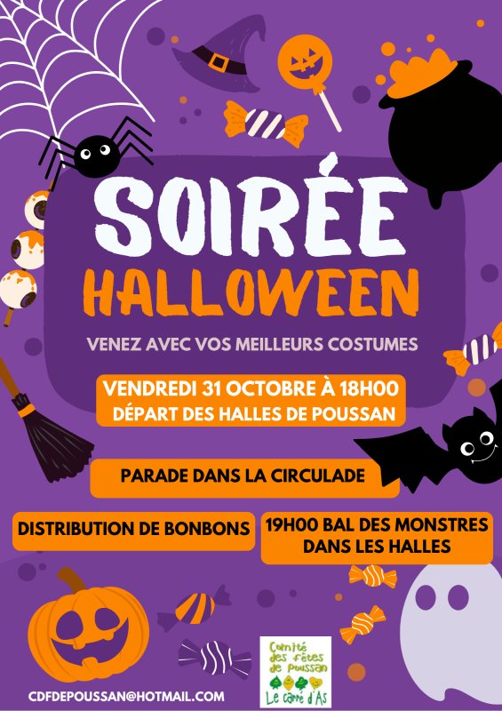 Prépare ton costume le plus flippant (ou le plus stylé) et viens faire la fête !Au programme :Parade monstrueuse dans les ruesPluie de bonbons pour tous les petits monstresBal d’Halloween pour danser jusqu’à la dernière note ensorcelée dans les HallesAmbiance, musique, rires et frissons garantis !Entrée gratuite, soirée animée Dj Sylvain Raillard et buvette sur place – viens si t’oses…