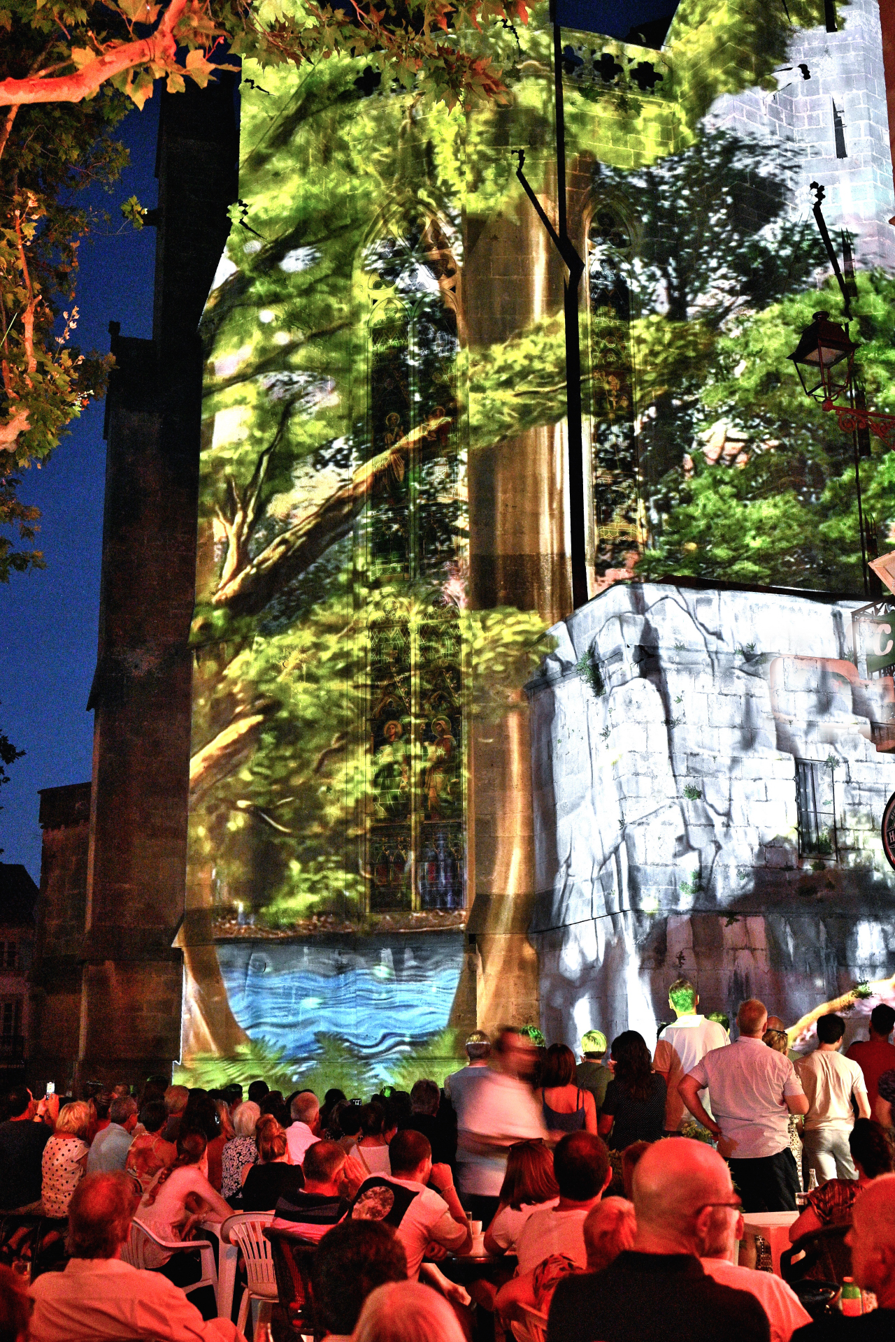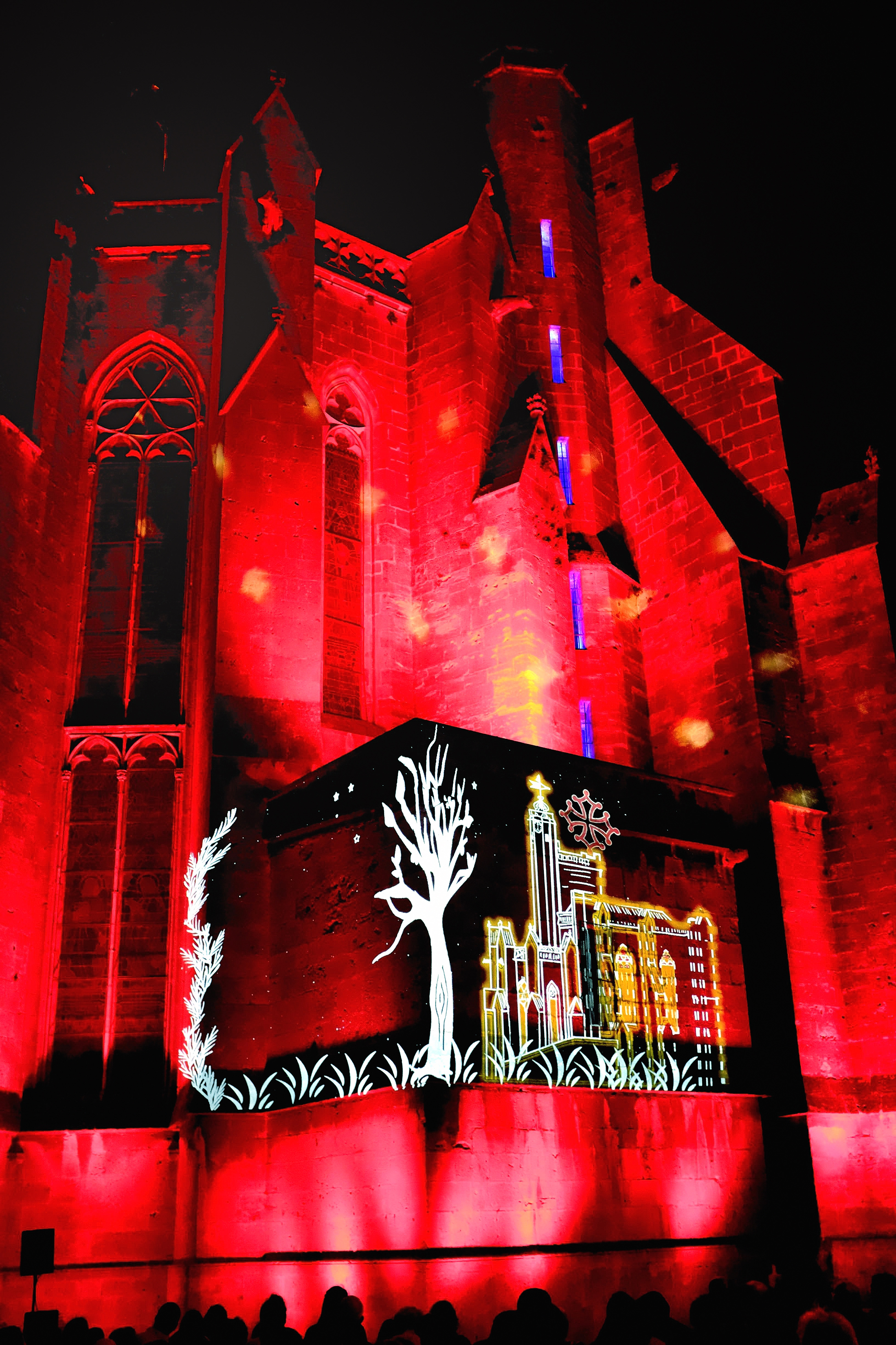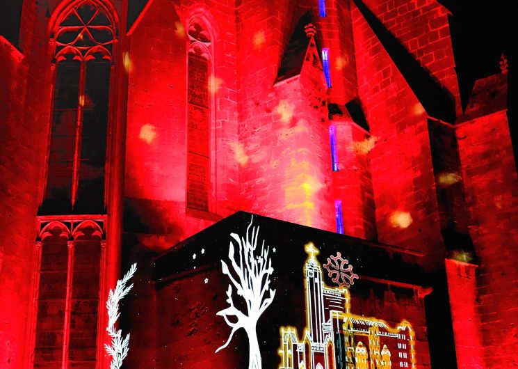 Son et lumière gratuit projeté sur la magnifique collégiale Saint-Etienne de Capestang.