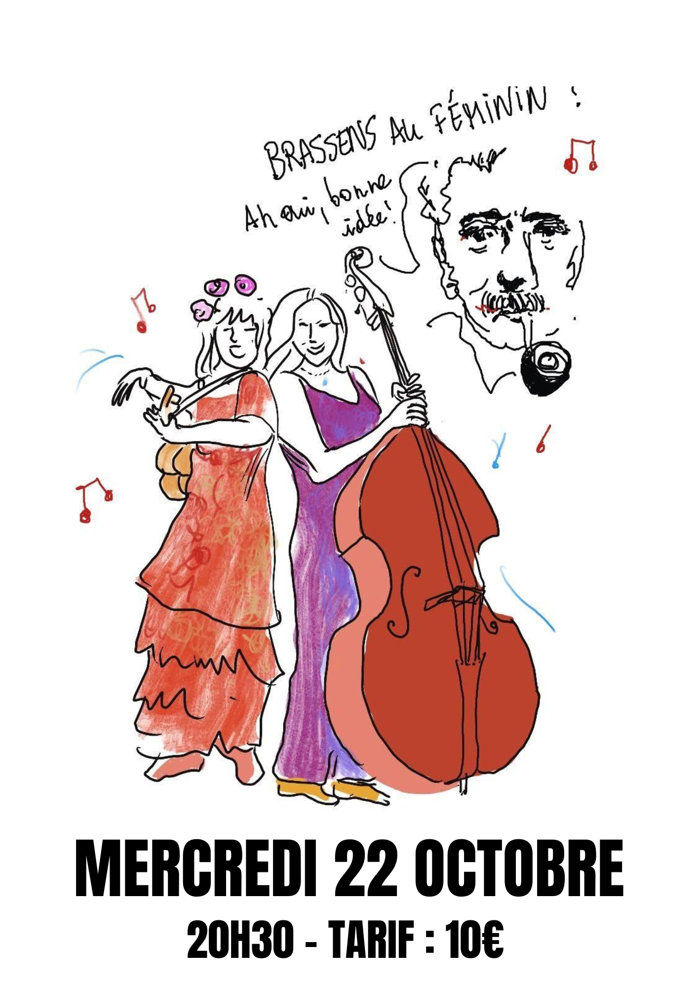 Découvrez Les Püpchens à l’Audace !Si Brassens avait été une femme ?…Qu’aurait-il chanté? ses chansons :Quand je pense à Fernande… je bande, aurait-il osé chanter Quand je pense à Fredouille, je mouille?… Une jolie fleur dans une peau de vache, aurait été : Un petit canard dans une peau de connard?…Avec Coralie Arguel, à la réécriture au féminin, au chant et au ukulélé.Avec Brigitte Radal à la contrebasse.Découvrez ce duo explosifA partir de 16 ans.