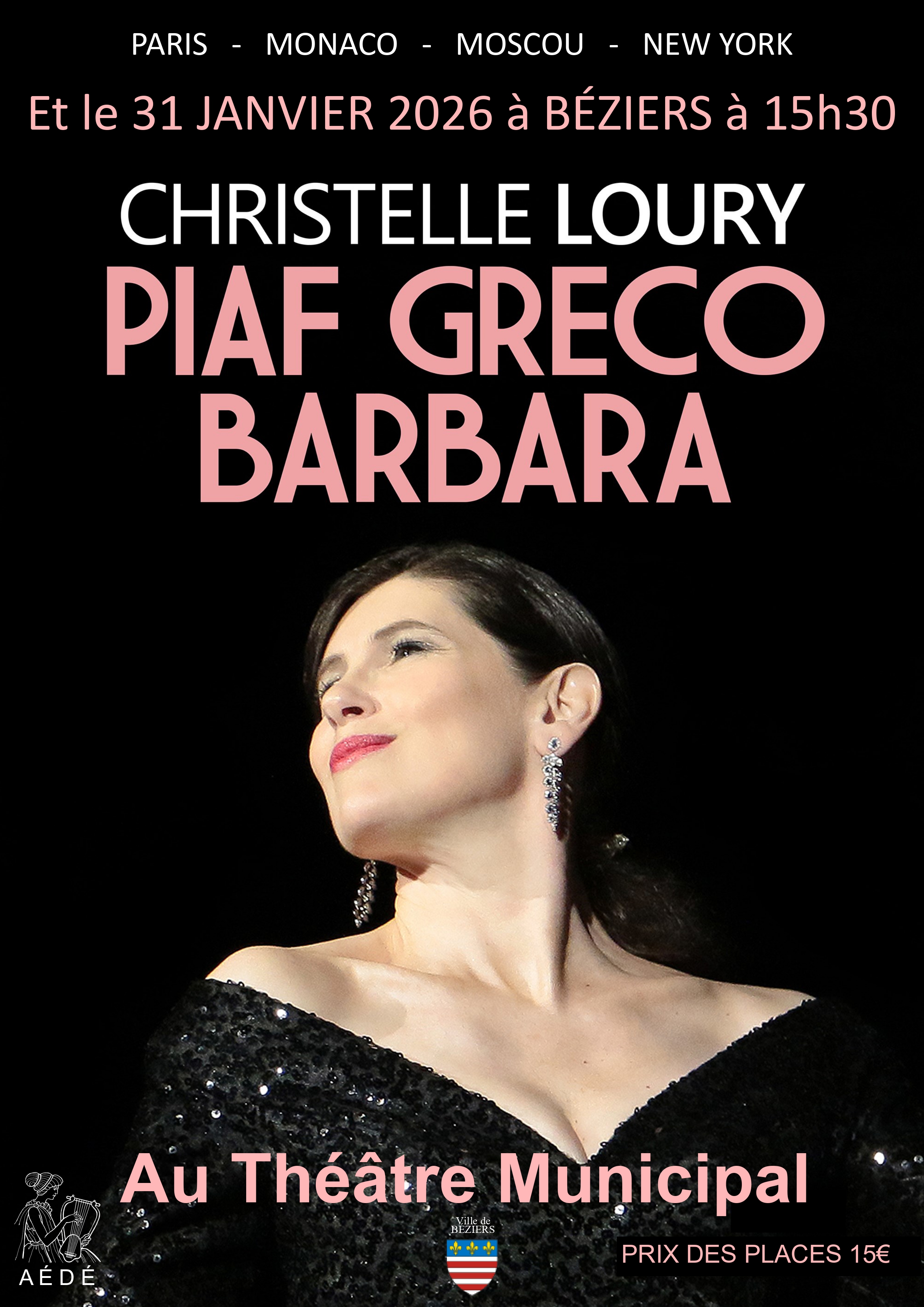 Christelle Loury rend hommage à trois icônes de la chanson française : Édith Piaf, Juliette Gréco et Barbara. À travers leurs plus grands titres, elle redonne vie à ces artistes marquées par la force, la sensibilité et la liberté. Entre émotion, tendresse, joie et espièglerie, ce spectacle célèbre la femme, l’amour et l’audace.