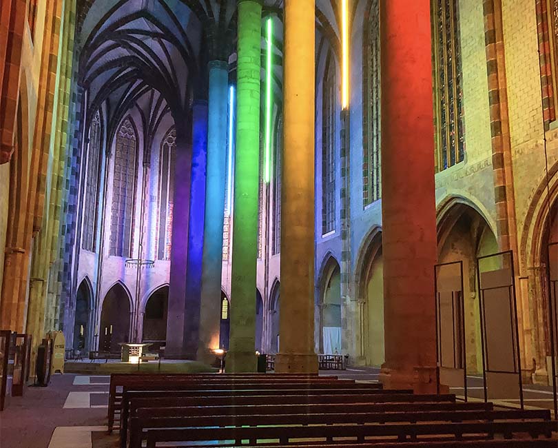 El recorrido continúa hacia el convento de los Jacobinos, fundado por los Dominicos, ejemplo emblemático del gótico meridional.