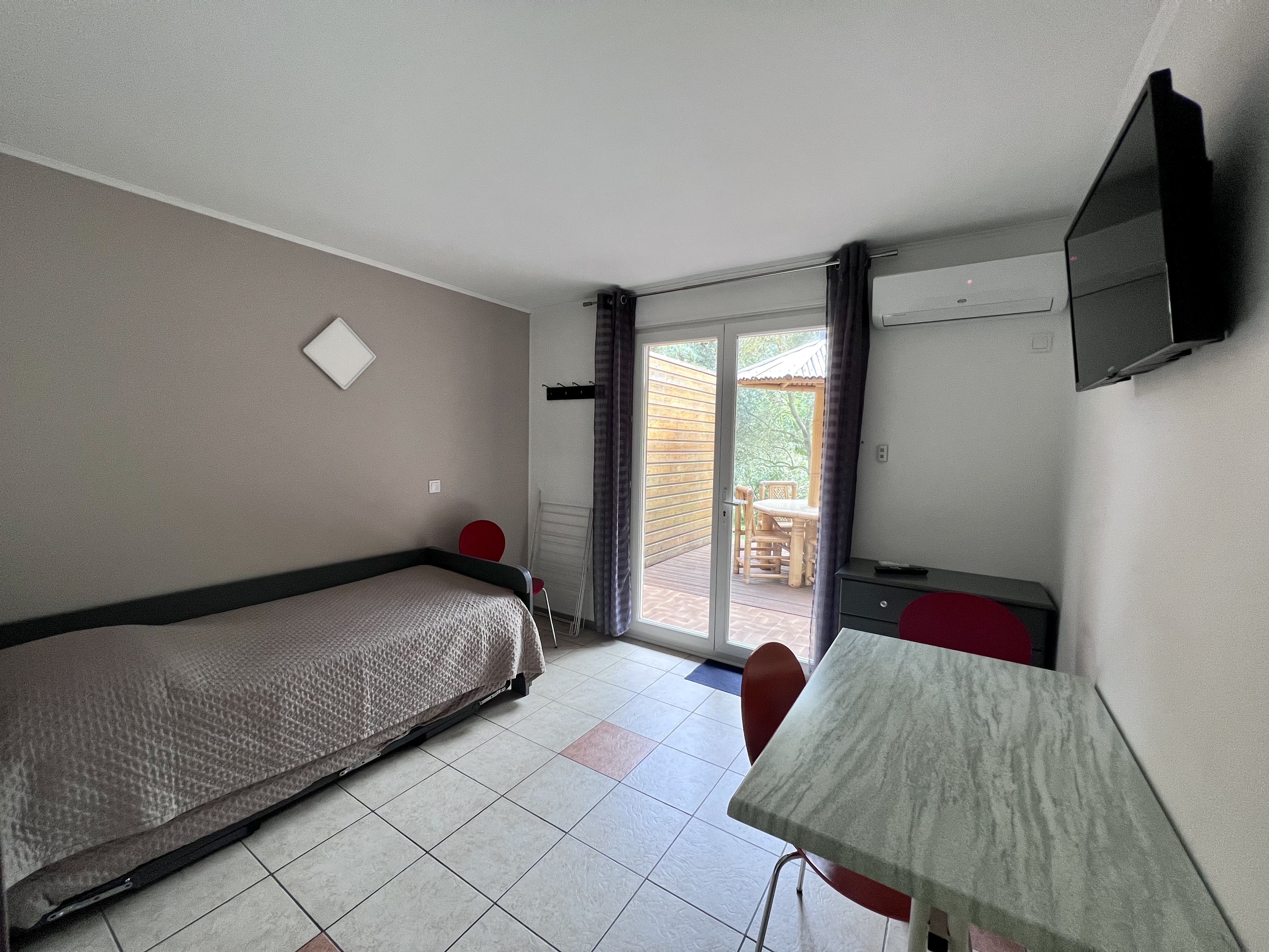 4 appartements climatisés de 35 m2 situés en rez-de-chaussée avec terrasses de 12 m2, salon de jardin, cuisine équipée, douche à l’italienne avec W.C, chambre avec lit double et dressing, séjour avec deux lits simples, coin repas. Piscine Jacuzzi Parking