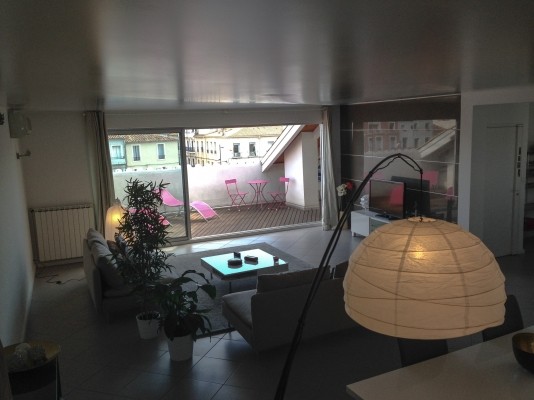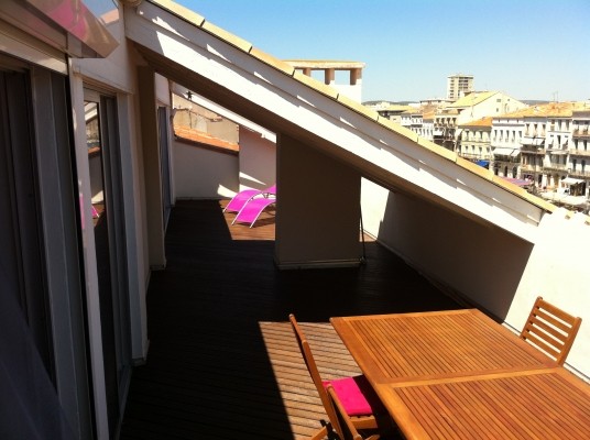 Appartement F3, en centre et sur quai avec vue sur le canal de 100 m², 3ème étage. à 500m du port, à 3,5km du bord de mer. Parking privé, salon de jardin, terrasse. Chauffage, climatisation, congélateur, four à micro-ondes, lave linge privatif, lave vaisselle, télévision, DVD, accès Internet, câble / satellite. Lit 160 cm chambre1, 2 lits 90 cm chambre2, lit 90 cm séjour. Tarif basse saison 790€. Festival world wide 1200€ la semaine