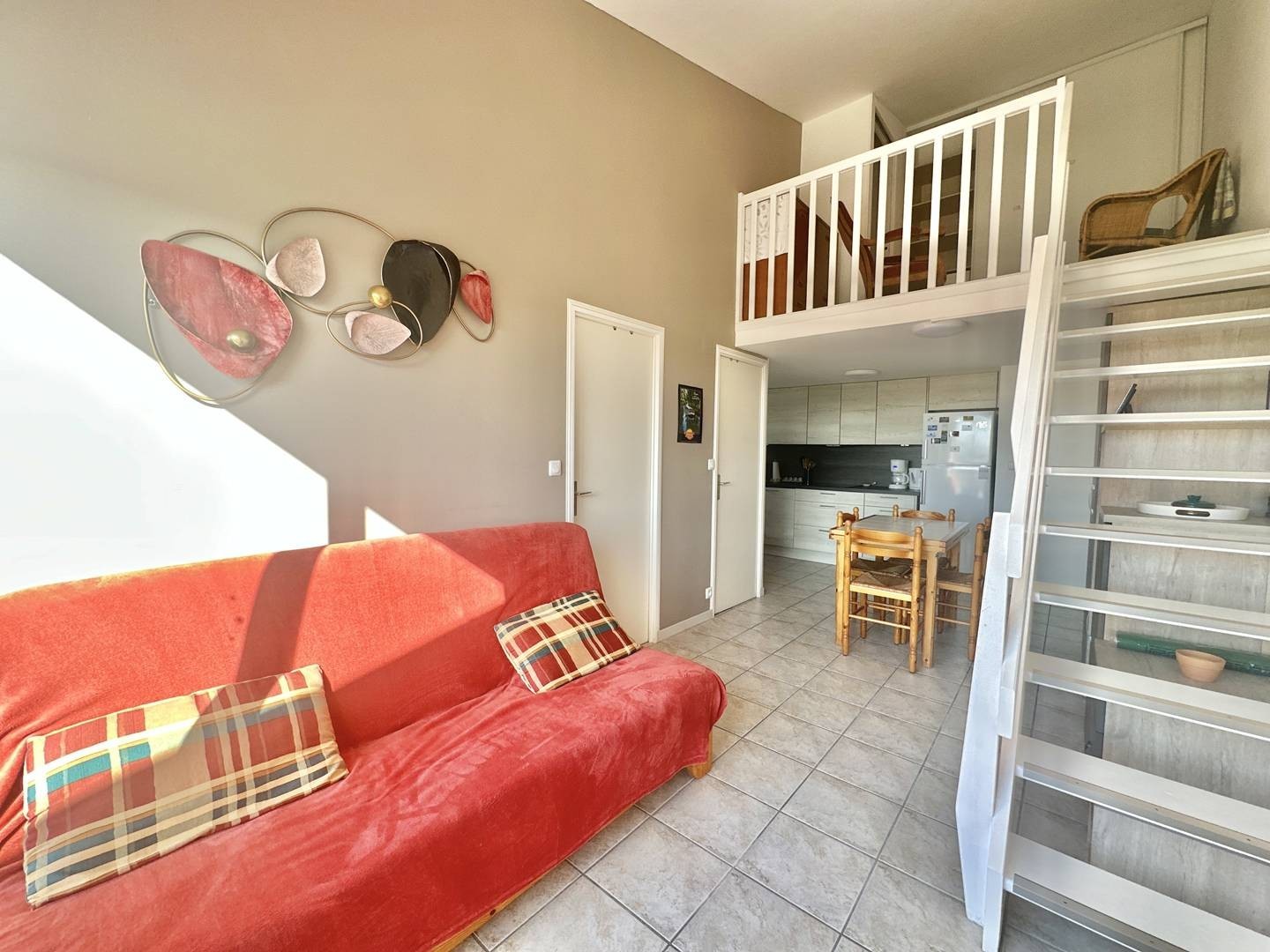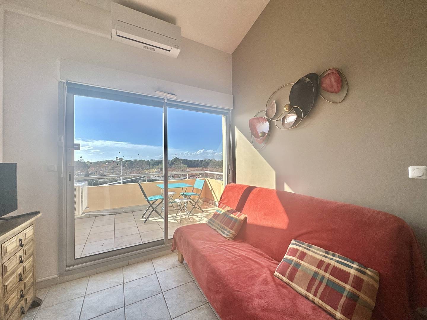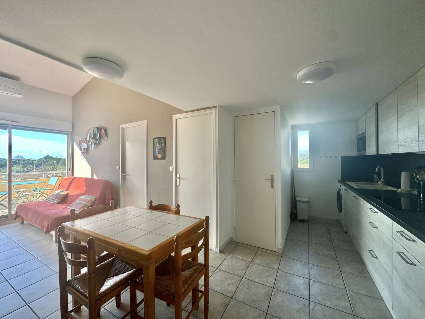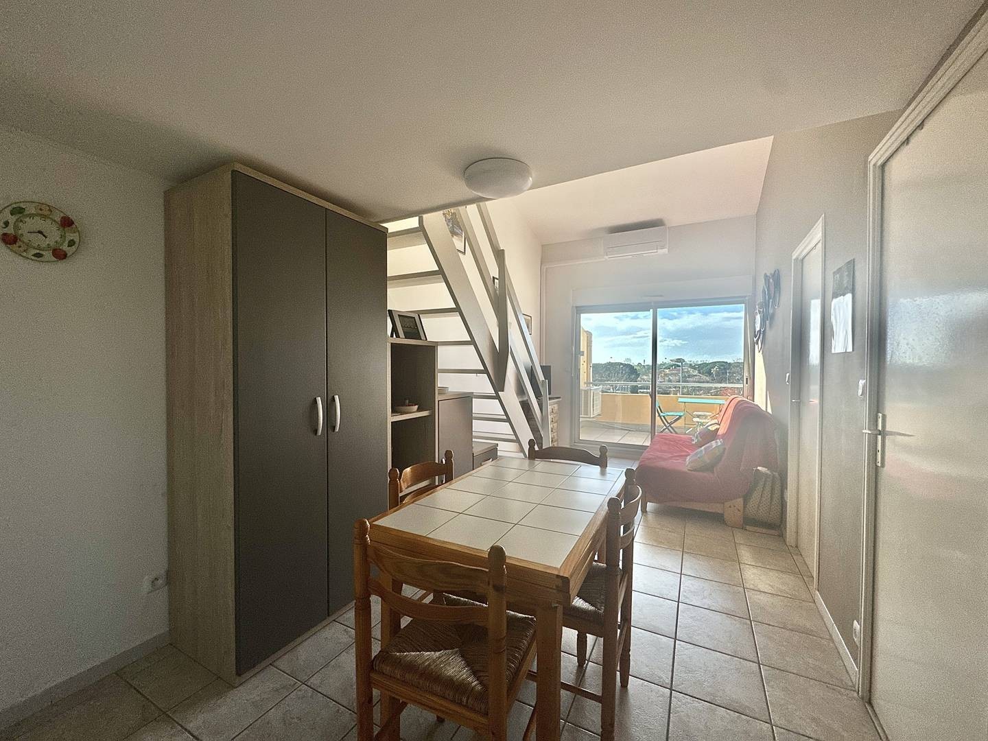 Profitez d’un séjour agréable au Cap d’Agde, dans cet appartement de type 3 pièces situé dans la résidence sécurisée Les Terrasses du Grand Bleu. Situé au 4e étage avec ascenseur, cet appartement de 42 m² dispose d’une belle cuisine équipée, ouverte sur un séjour lumineux avec canapé convertible en lit 140 cm, idéal pour 6 personnes. L’appartement comprend également une première chambre avec un lit double en 140 cm, une deuxième chambre à l’étage avec deux lits en 90 cm, et une salle d’eau avec douche ainsi que des WC séparés. Vous pourrez également profiter d’une agréable terrasse de 8 m² avec store banne. À seulement 650 mètres de la plage Richelieu, cet appartement est situé dans une résidence sécurisée avec piscine et un garage privé. Équipements : Télévision, climatisation, micro-ondes, lave-vaisselle, lave-linge. Animaux acceptés Réservez dès maintenant cet appartement au Cap d’Agde. Référence agence Acapulco 313