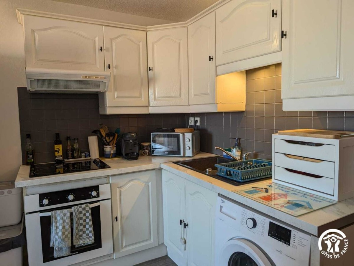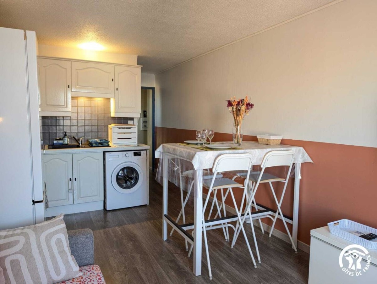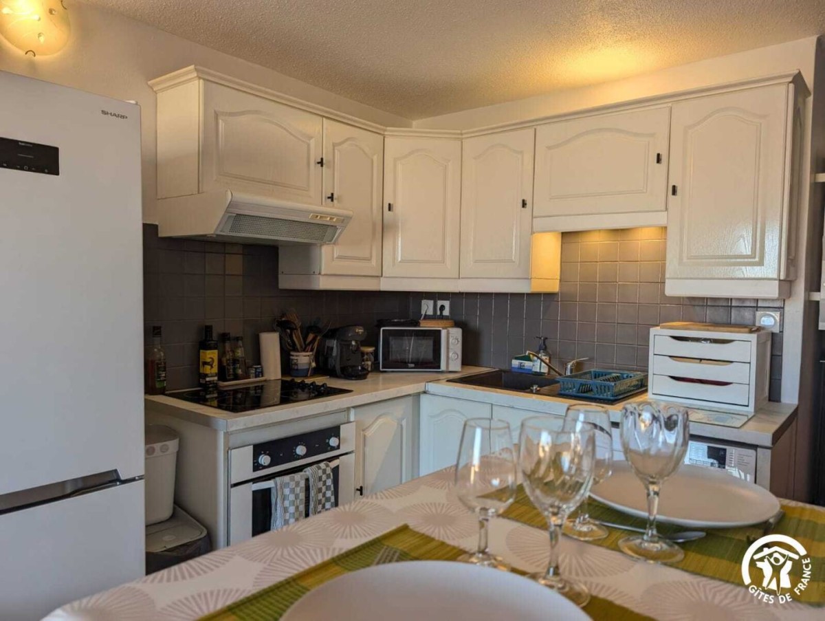 Situé dans l’effervescente station balnéaire du Cap d’Agde, cet appartement est idéal pour découvrir les charmes du littoral héraultais. À proximité immédiate, l’allée de la Flânerie, très animée en été, vous plonge dans l’ambiance festive du bord de mer, avec ses boutiques, ses restaurants et ses marchés nocturnes. Vous pourrez également découvrir Agde, ville d’art et d’histoire, visiter le musée de l’Éphèbe, ou profiter des plages de sable fin, du port de plaisance et des nombreuses activités nautiques. Situé au 4e étage d’une résidence en ville, dans une rue piétonne très animée, ce City break traversant pour deux personnes offre une ambiance traditionnelle et un cadre bord de mer. L’appartement se compose d’une cuisine ouverte entièrement équipée (lave-linge, four, micro-ondes, frigo, congélateur, bouilloire, grille-pain, plaque de cuisson, cafetière Tassimo et filtre), d’un espace salle à manger avec table haute, chaises, canapé et télévision, et d’une salle d’eau avec douche, vasque et WC (sèche-cheveux). La chambre, également située au 4e étage, dispose d’un lit double 140×190, d’un ventilateur plafonnier et d’une superficie de 10,5 m². À l’extérieur, un balcon ombragé permet de profiter des douces soirées estivales. Le stationnement se fait sur les parkings publics à proximité (300m). L’appartement est équipé de la climatisation dans le salon pour plus de confort en été. Le ménage et le linge sont proposés en option. 1 couchage d’appoint est disponible pour un enfant sur demande auprès du service réservation (0468114070). Points forts : Emplacement central au Cap d’Agde Vue mer Climatisation Accès direct aux plages, au port et aux commerces Idéal pour un séjour en couple