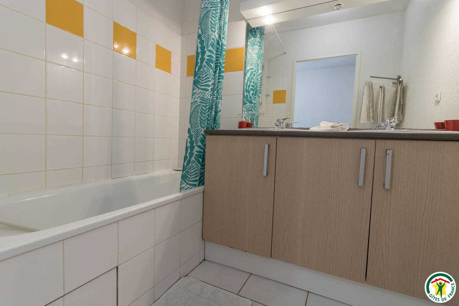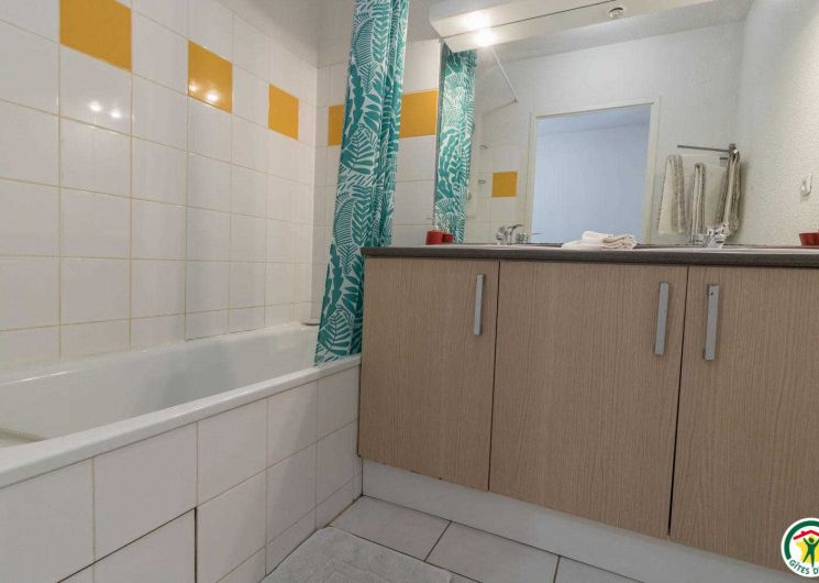 – Arriba: un pasillo conduce a 2 habitaciones (2 camas individuales de 90 cm, que pueden ser gemelas) (2 camas individuales de 90 cm, una de las cuales es un altillo), un cuarto de ducha y un WC.
