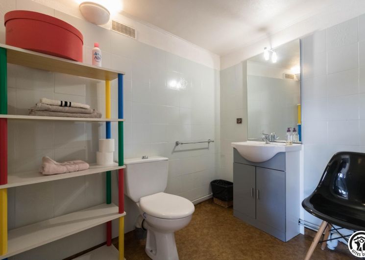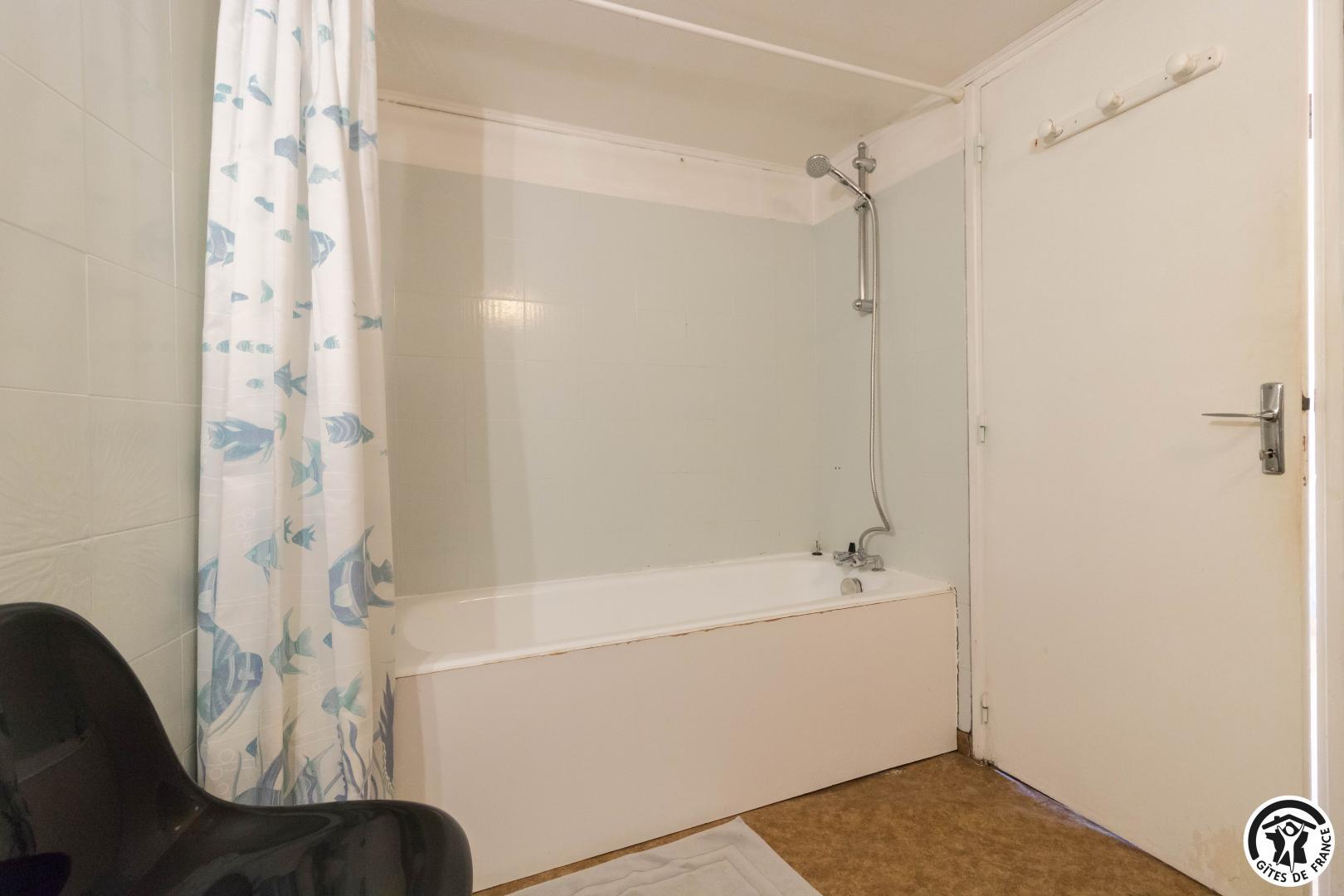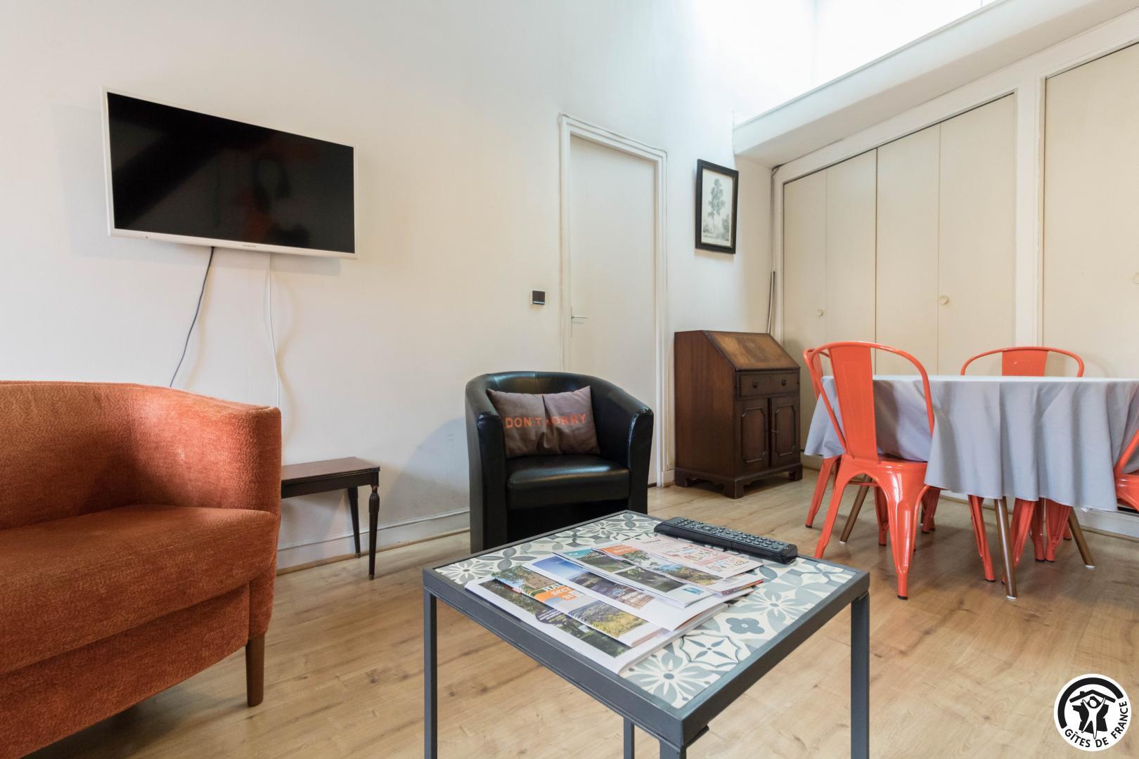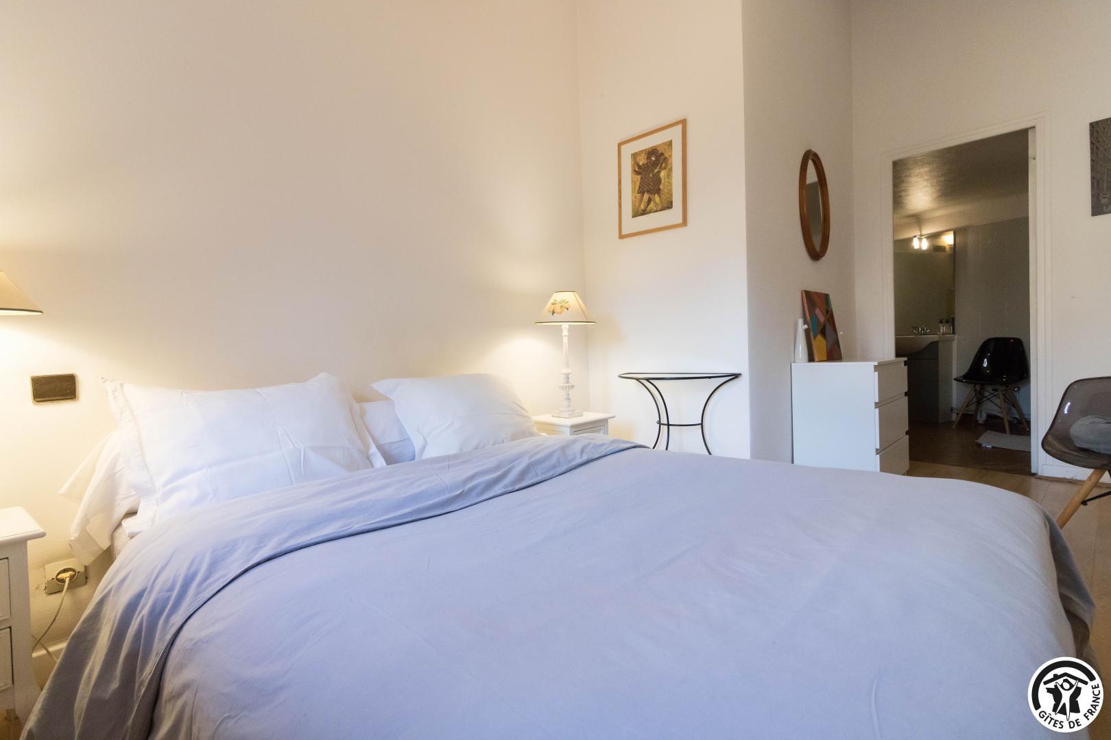 Descripción de las habitaciones: entrada, cocina equipada (placa de gas de 4 fuegos, horno, microondas, frigorífico-congelador), salón con rincón comedor y rincón salón (TV, escritorio, sofá cama para 1 persona), dormitorio (1 cama doble 140*190cm), cuarto de baño/WC (bañera y lavabo). Sin lavavajillas. Aparcamiento público en Les Carmes