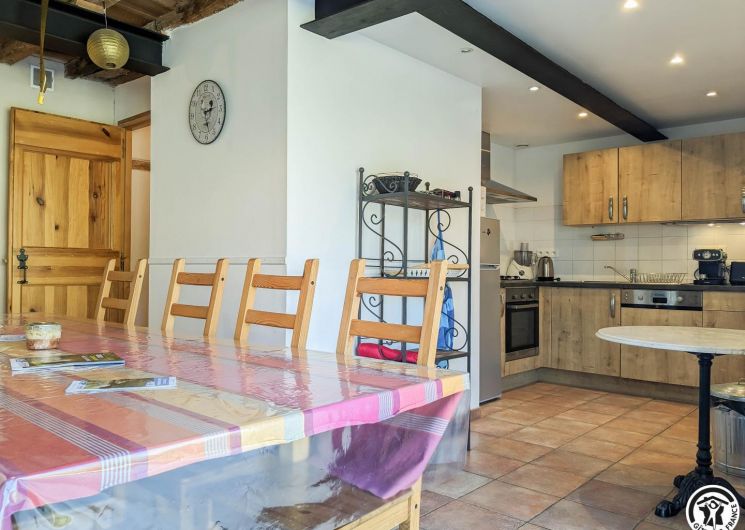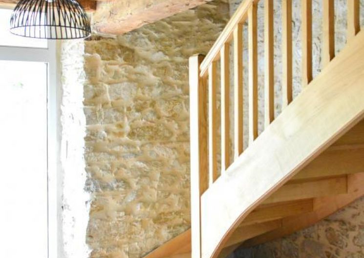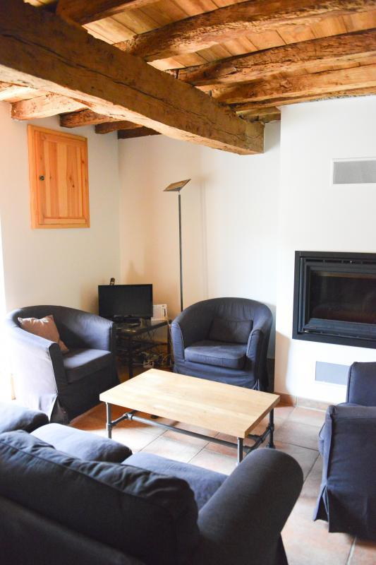 – Planta baja: gran hall de entrada, cocina equipada abierta al comedor con gran ventanal, salón (con chimenea de hogar cerrado), 1 dormitorio (1 cama doble (160 cm)), cuarto de ducha/WC, trastero.