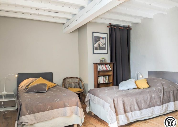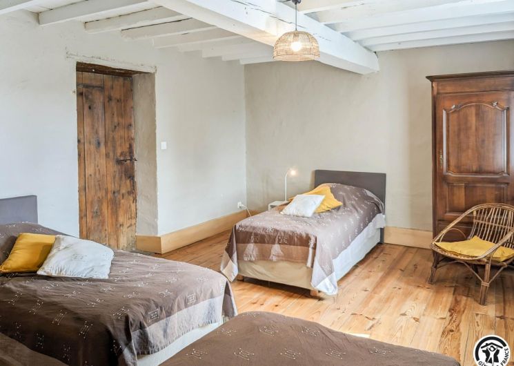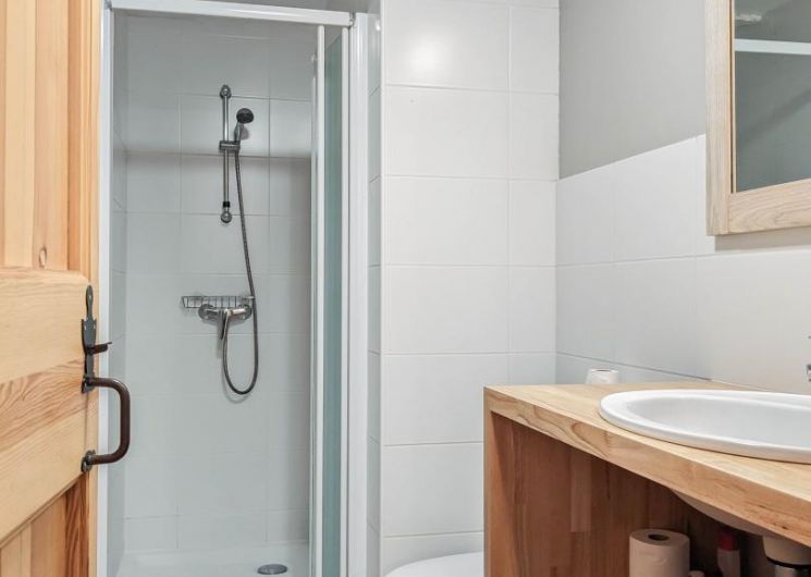– Primera planta: 3 habitaciones (3 camas individuales 90cm) (2 camas individuales 90cm) (1 cama doble 160cm), cuarto de baño+ducha, WC con lavabo.
