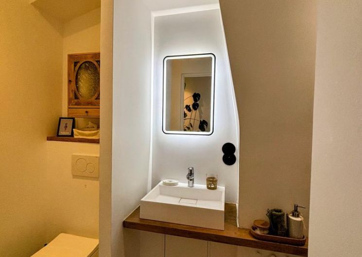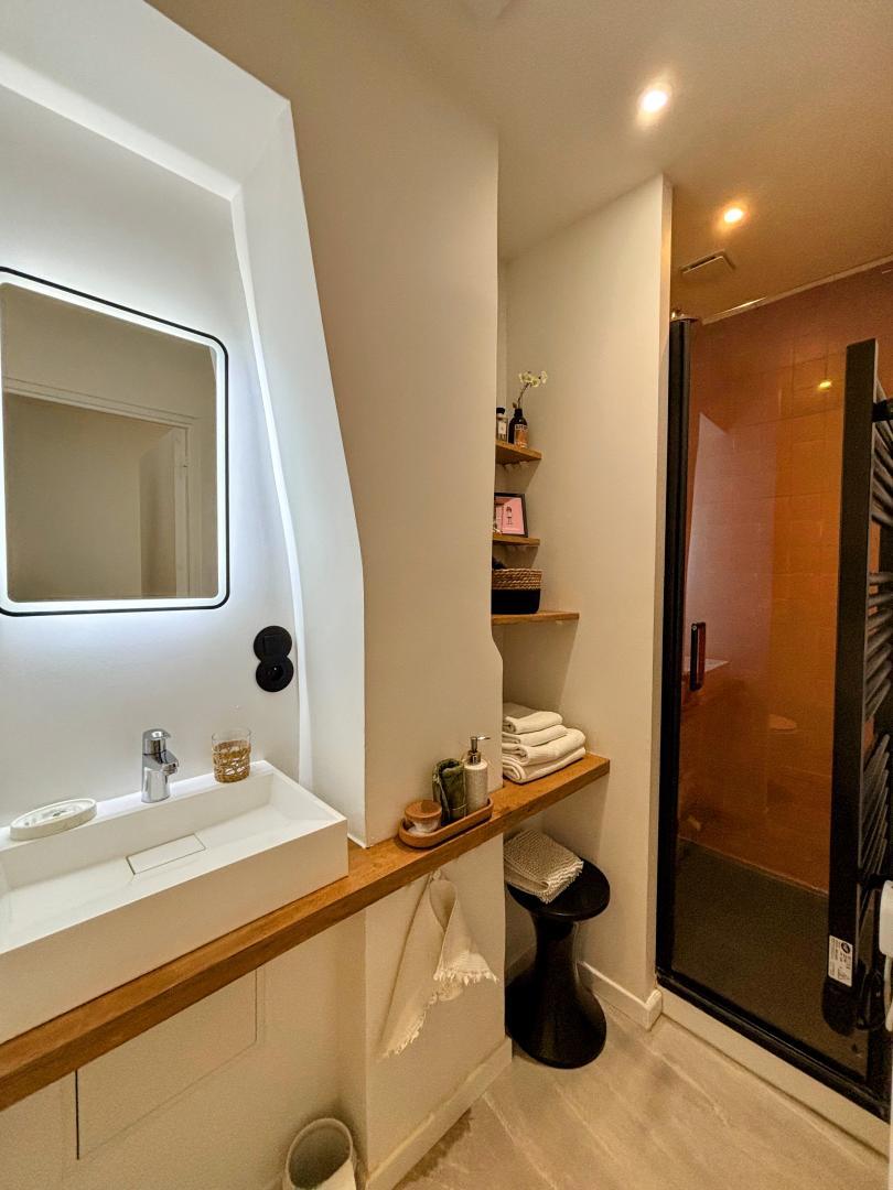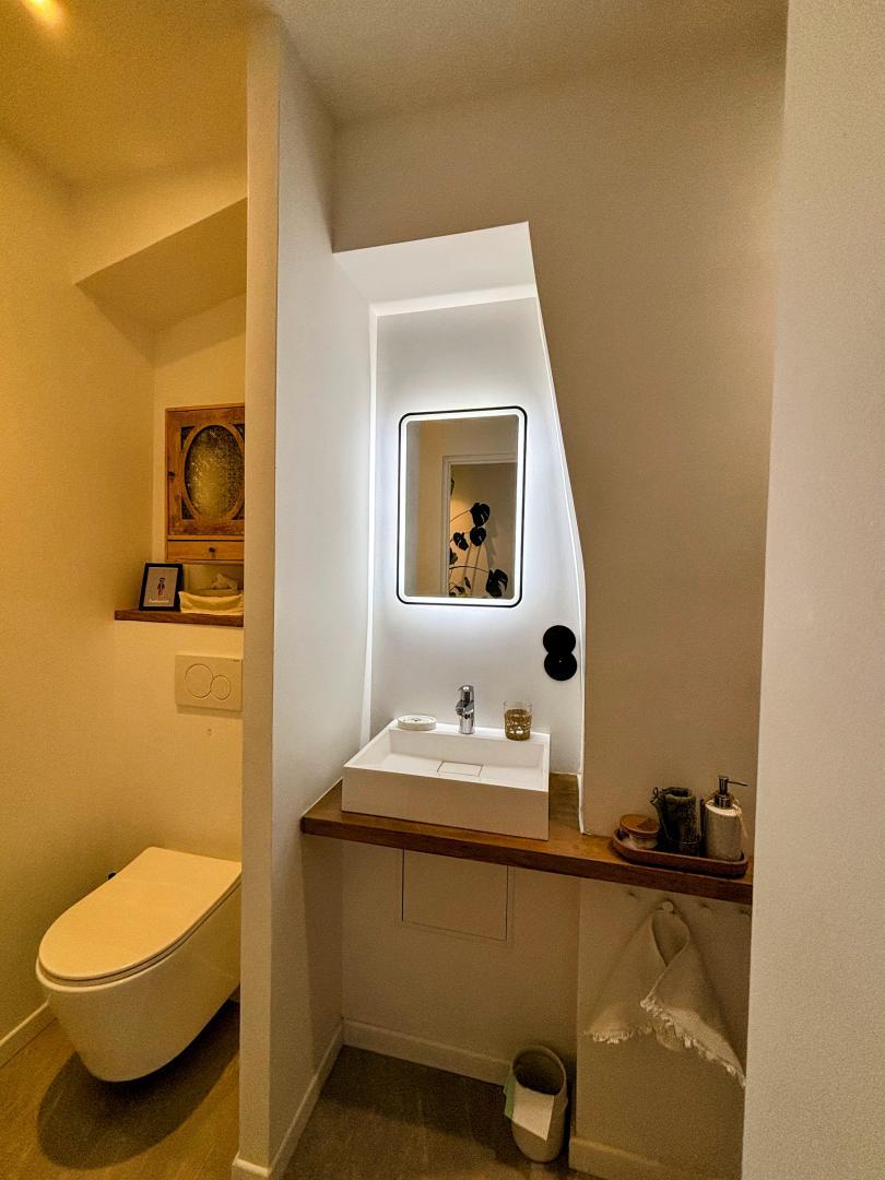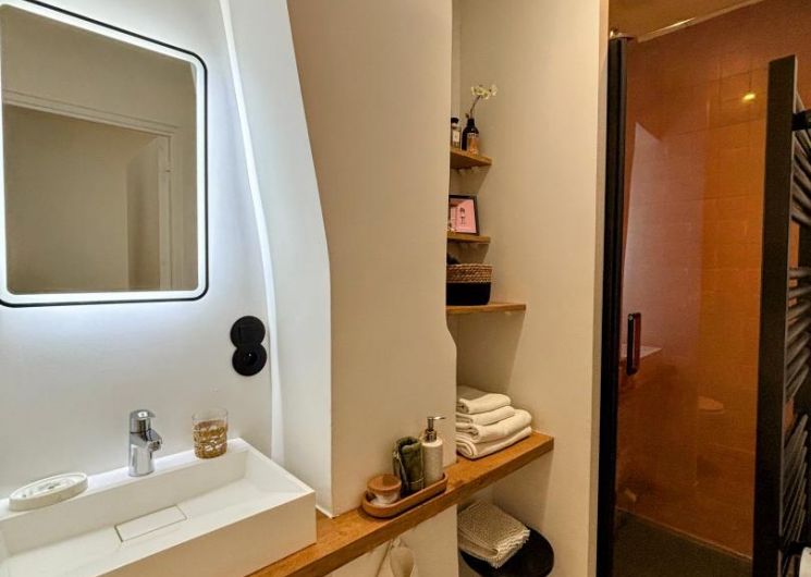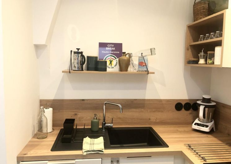 Los propietarios, Laurent y Mathieu, se propusieron renovar el piso utilizando materiales ecológicos, sanos y locales. Las mesillas de noche, las estanterías y el lavabo de troncos proceden del aserradero familiar de Laurent. Los productos domésticos y de belleza también son respetuosos con el medio ambiente y tienen certificado ecológico. La decoración, cálida y de buen gusto, invita a viajar y descubrir la Ville Rose. Se sentirá como en casa desde el primer momento. La limpieza es irreprochable, para que su estancia sea lo más agradable posible.