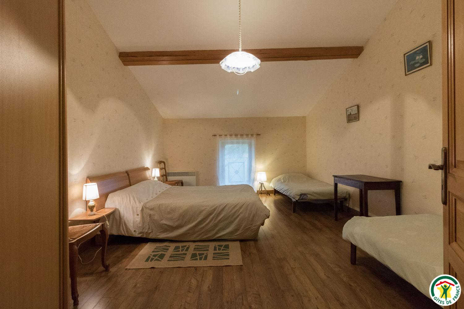 – Planta superior: habitación familiar (1 cama doble 140cm + 2 camas individuales 90cm + cuarto de ducha y WC separado).