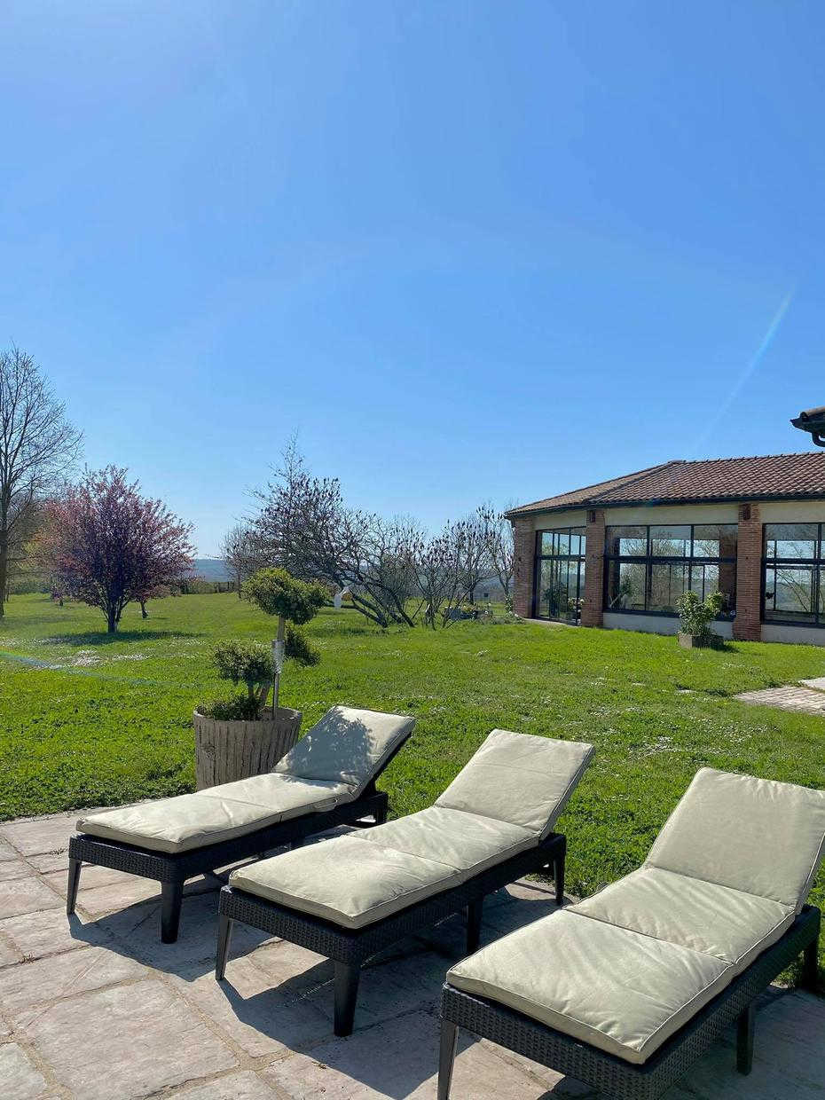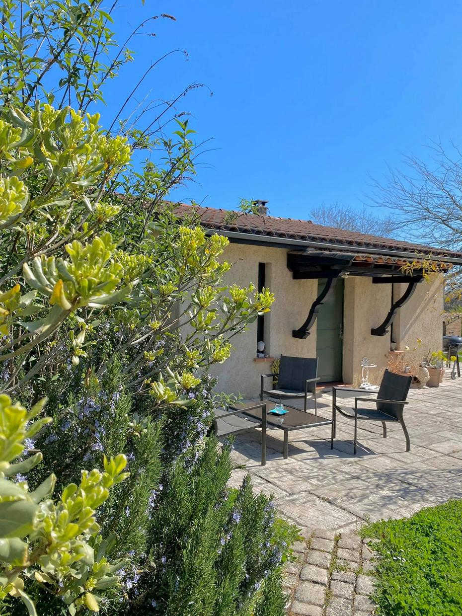 Esta casa rural, situada en una antigua dependencia agrícola, se encuentra cerca de la casa de los propietarios, en una propiedad vallada de 1,8 hectáreas. Situada en la ladera de una colina, goza de vistas ininterrumpidas al sur sobre la región de Toulouse, con los Pirineos al fondo.