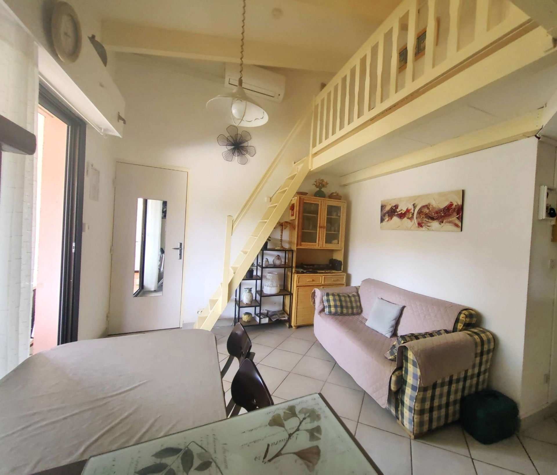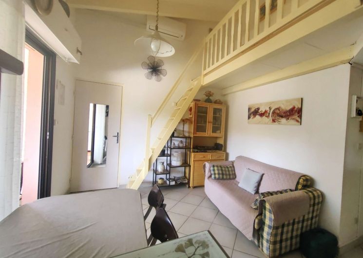 Location T2 climatisé – Quartier Pinède – 4 personnes maxi – Tout confort – 3 couchages – Terrasse 8m² -Commerces, services et plage à 900m environ.