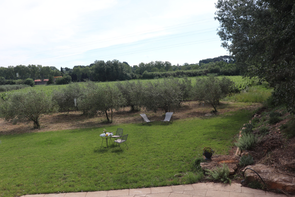 Mas rénové indépendant de 95m² pour 6 personnes en plein cœur de notre vignoble. Grande terrasse entourée d’oliviers. Cuisine d’été ombragée. Séjour lumineux, cheminée languedocienne en pierre dans un espace de 45m² avec cuisine ouverte toute équipée.