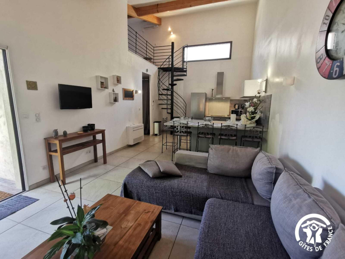 Ce joli gîte d’une capacité de 6 personnes dispose d’un grand séjour avec une cuisine ouverte tout équipée (four, micro-ondes- réfrigérateur, congélateur, lave-vaisselle, machine à café, bouilloire…) ainsi que tout le nécessaire de cuisine. Dans l’espace salon, le canapé convertible vous offrira les deux premiers couchages. Au rez-de-chaussée se trouve la salle de bain avec sa douche à l’italienne. Dans la chambre principale, vous disposerez d’un grand lit en 160x200cm et de rangements. Le second espace nuit se trouve en mezzanine. Vous disposerez de deux lits en 90x190cm qui peuvent être installés en un lit king size en 180x190cm à la demande. Une terrasse attenante privée, sans vis-à-vis, et un barbecue sont également à votre disposition, La piscine à partager (autre logement sur place) est en accès libre de 9h à 19h. Afin de vous offrir tout le confort nécessaire, le logement est équipé d’une climatisation, d’une machine à laver le linge et d’une connexion internet gratuite. Le gîte est loué toute charges incluses. Les draps, le linge de toilette et le ménage de fin de séjour est inclus. ATTRAITS TOURISTIQUES : Proche Montpellier (ville universitaire), des stations balnéaires, des plages. Etang de Thau (conchyliculture), Marseillan, Bouzigues, Frontignan-plage, Sète (port, théâtre de la mer, musées, festivals, traditions), abbaye de Valmagne.