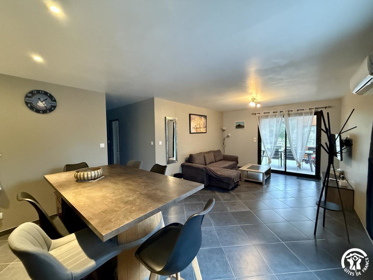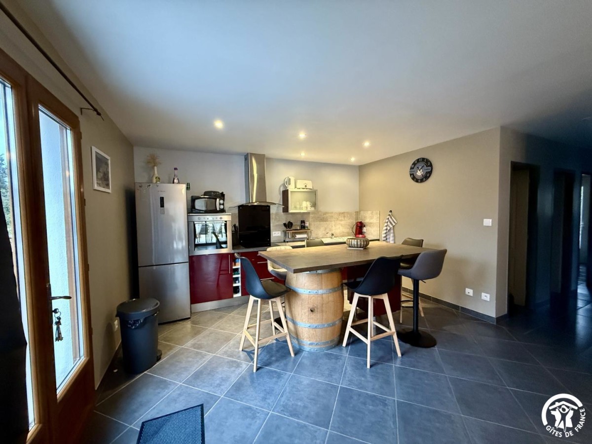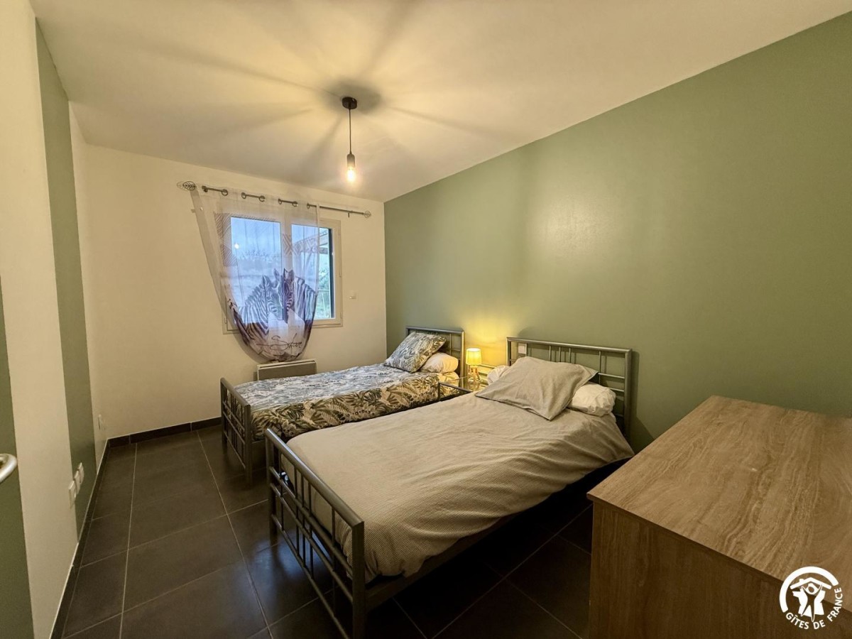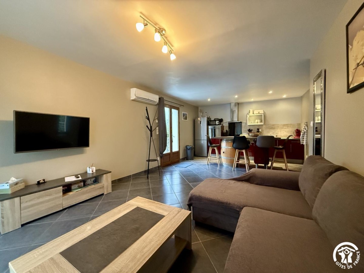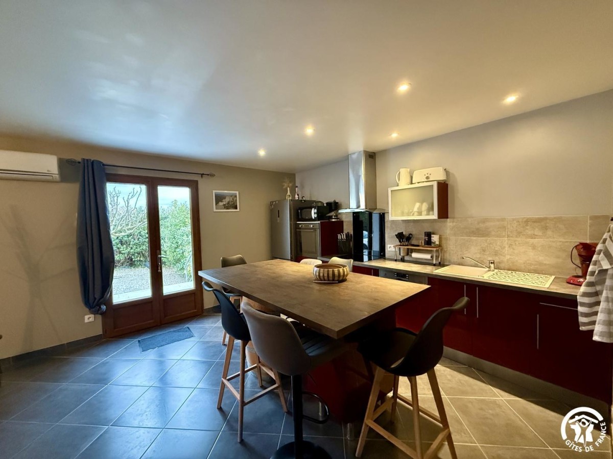 Au cœur des Corbières-Minervois, entre vignes et garrigue, le gîte La Crouzette vous accueille à Escales, charmant village audois situé à seulement 5 km du Canal du Midi. Vous êtes ici dans une région riche en patrimoine et en paysages méditerranéens. À proximité, la Tour d’Escales offre un joli point de vue sur les alentours, les sentiers balisés invitent à la promenade, et le lac de Jouarres vous promet de belles journées au bord de l’eau. Ne manquez pas la cité cathare de Minerve ou l’Abbaye de Caunes-Minervois, deux joyaux du territoire. Cette maison mitoyenne de plain-pied, sans vis-à-vis avec les propriétaires, est idéale pour un séjour en famille ou en couple. Elle se compose d’une cuisine ouverte entièrement équipée (four, micro-ondes, plaque à induction, lave-vaisselle, réfrigérateur, congélateur, bouilloire, cafetières à filtre et Senseo), d’un salon avec télévision, d’une salle d’eau avec douche italienne, de WC séparés et de trois chambres confortables : Chambre 1 : 1 lit 140×190 – 9 m² Chambre 2 : 1 lit 140×190 – 9 m² Chambre 3 : 1 lit 140×190 – 9 m² À l’extérieur, vous profitez d’un jardin privé, d’une terrasse couverte exposée plein sud avec salon de jardin et barbecue. La piscine privative (3,50 x 3 m, profondeur 1,10 m) est sécurisée par alarme et ouverte du 1er mai au 30 septembre. Un portique pour enfants est également à disposition. Le stationnement est privé, les moustiquaires et la climatisation assurent votre confort en toute saison. À seulement 500 m du village, ce gîte au calme, en pleine nature, est aussi adapté au télétravail grâce à ses équipements et à son environnement paisible. Ménage à régler au propriétaires lors de votre arrivée 80€ par semaine (offert pour les weekends).