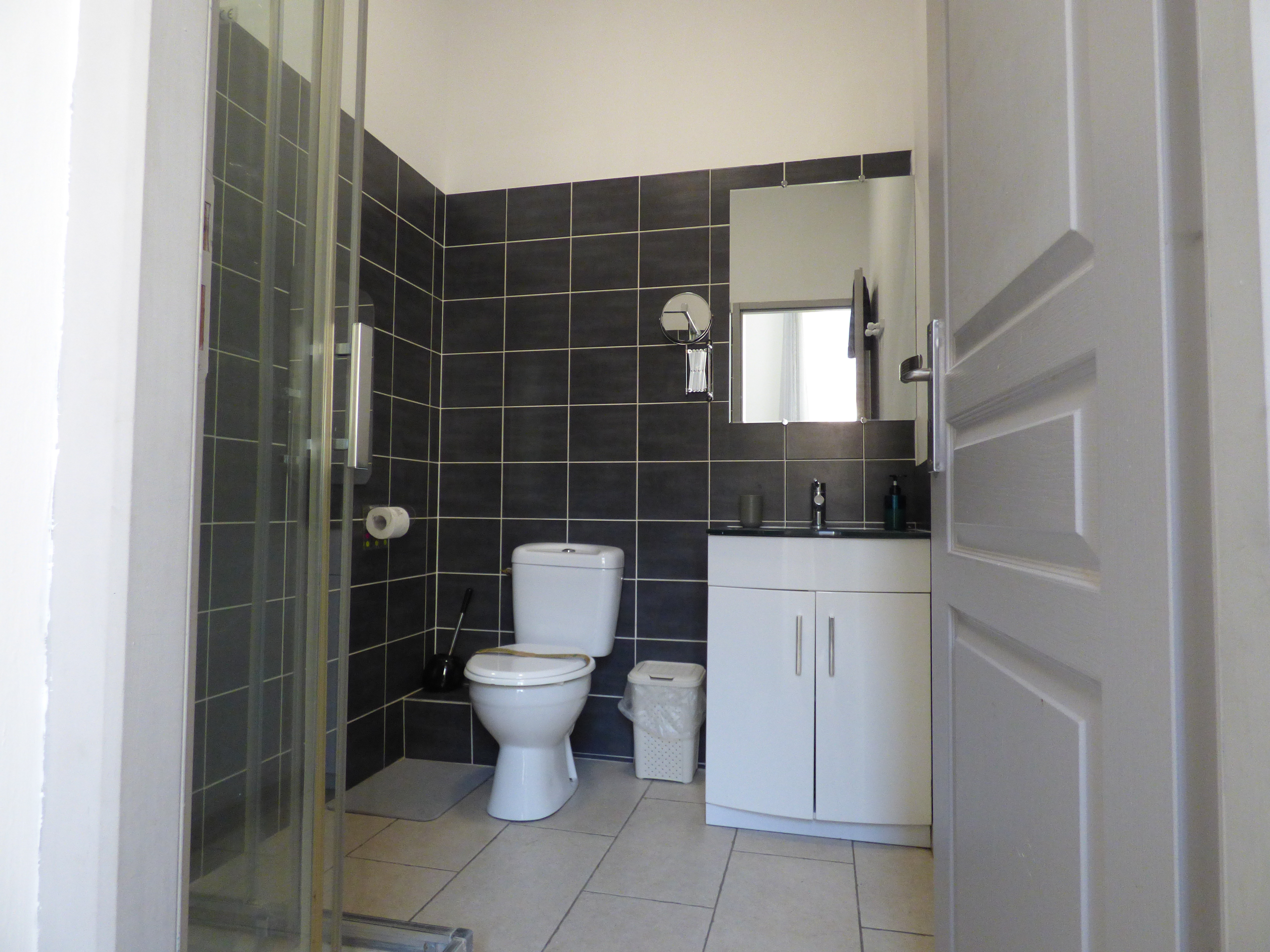 Cet appartement est situé au 1er étage de notre résidence haussmanienne en cours de classement et sécurisée, proche du Palais des Congrès, à 200 m des allées Paul Riquet et du centre historique, 400 m de la gare routière et du Parc des Poètes, 900 m du centre commercial “Le Polygone”, du cinéma multiplex, du bowling et de la gare sncf, 15km des plages.