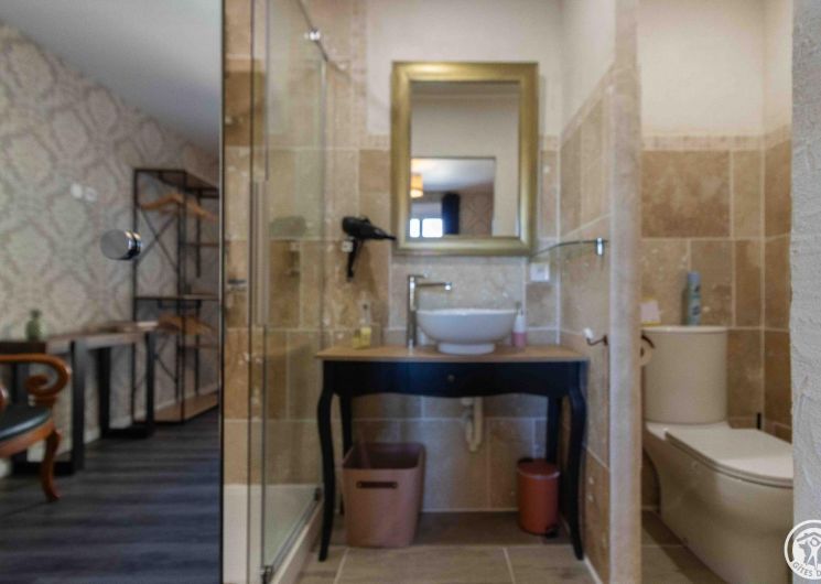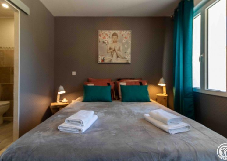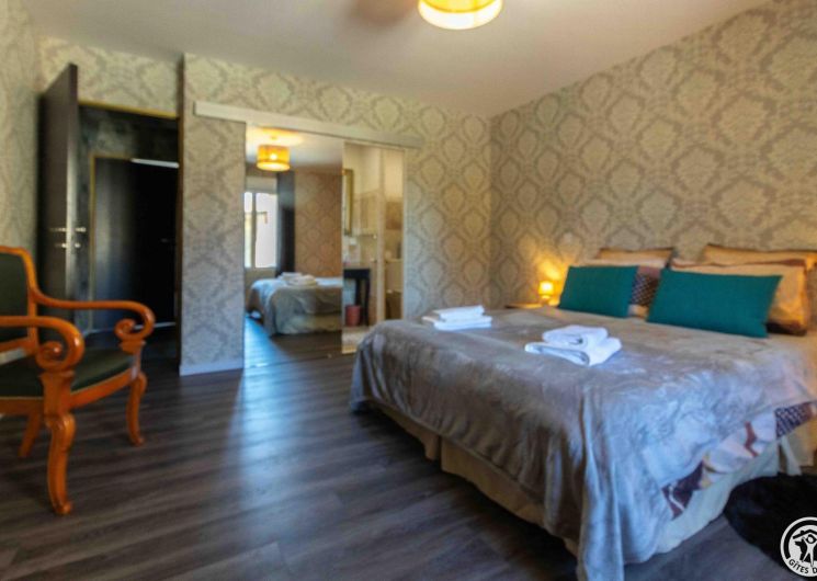 À l’étage, les quatre chambres, chacune équipée d’un lit pour 2 personnes en 160x200cm et d’une salle d’eau privative, assurent intimité et confort à tous les hôtes. Chauffage électrique, climatisation à l’étage. Connexion Internet wifi.