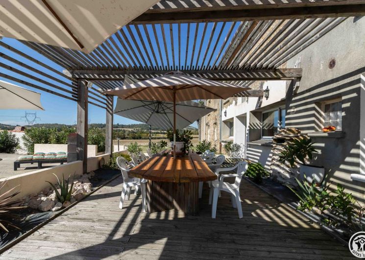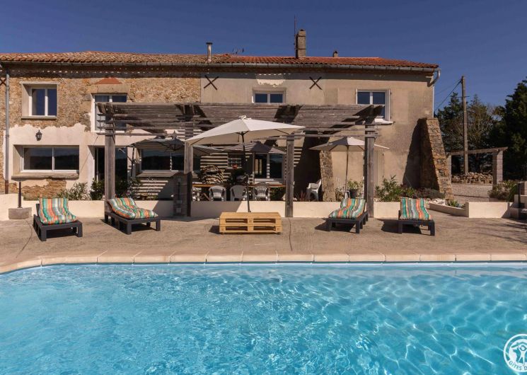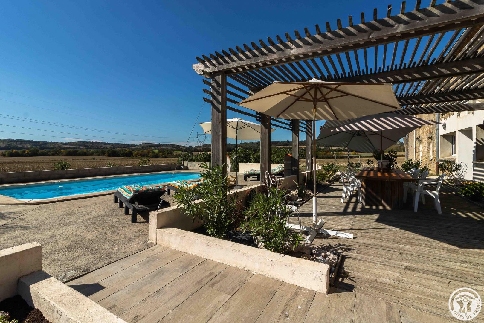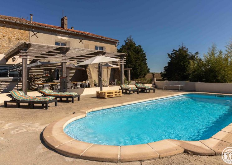 Au Sud, profitez de la piscine privée (de juin à septembre entre 10h et 22h), d’une terrasse avec pergola, d’un salon de jardin, et d’un espace barbecue/plancha pour vos repas d’été. Au Nord, une terrasse couverte sous une halle offre un agréable coin détente à l’abri du soleil. Une aire de stationnement est également à disposition.