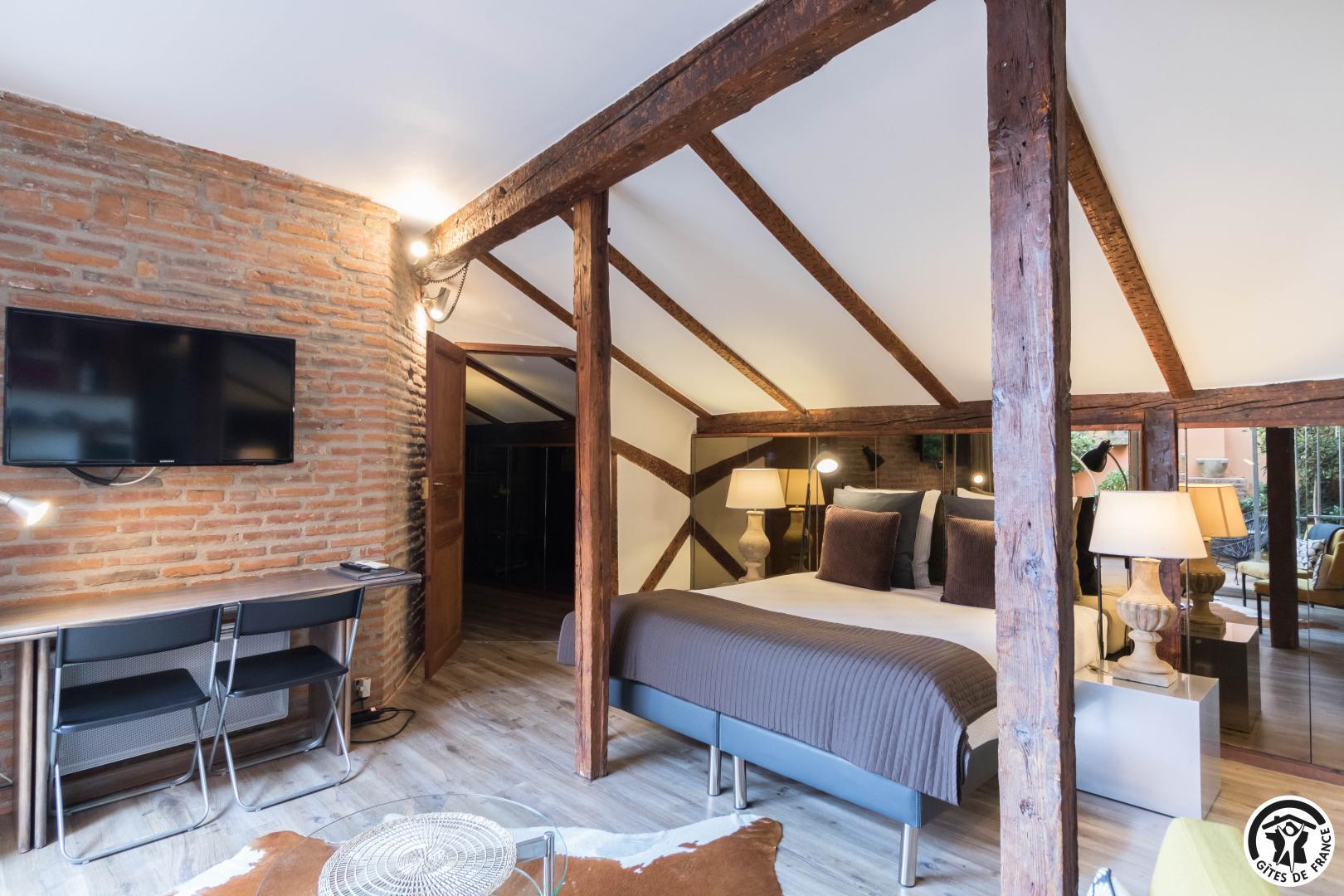 Con vistas a los tejados de Toulouse, este excepcional estudio combina el prestigio de una herencia renacentista con un confort decididamente contemporáneo. Imagínese disfrutar de una barbacoa en su terraza privada, con los campanarios, las tejas rojas y el cielo de Occitania como telón de fondo.