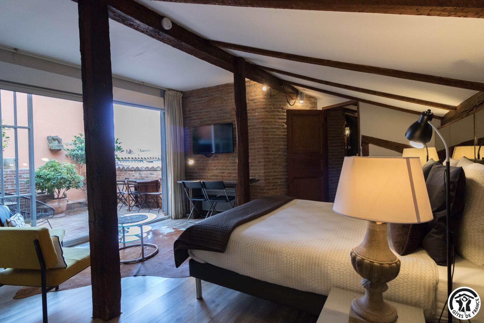 ¿Su atracción estrella? Una terraza íntima y soleada con barbacoa, suspendida sobre el barrio histórico de Carmes, ideal para un desayuno con los campanarios como panorama o una velada de barbacoa bajo las estrellas.