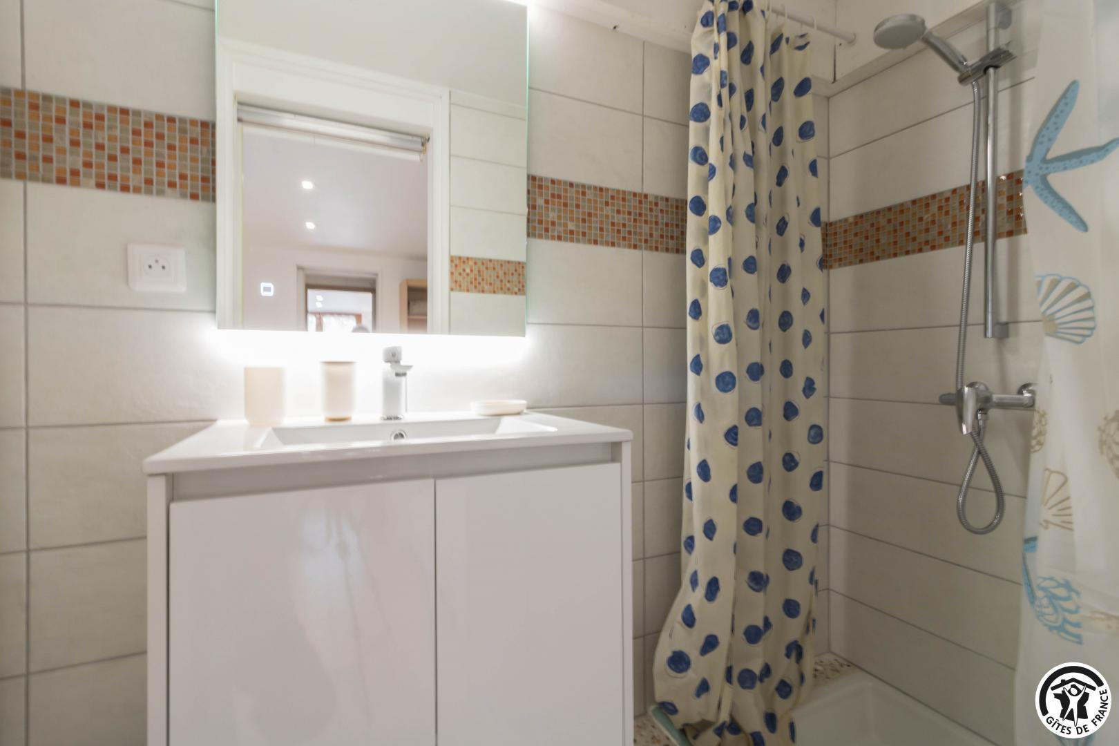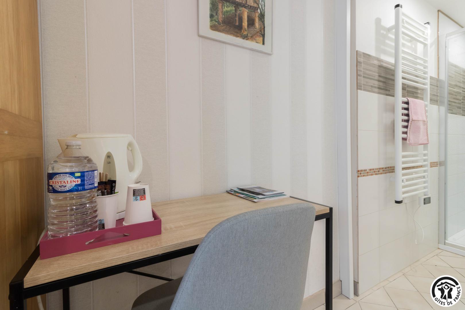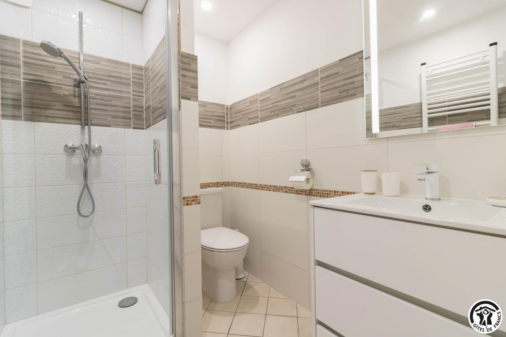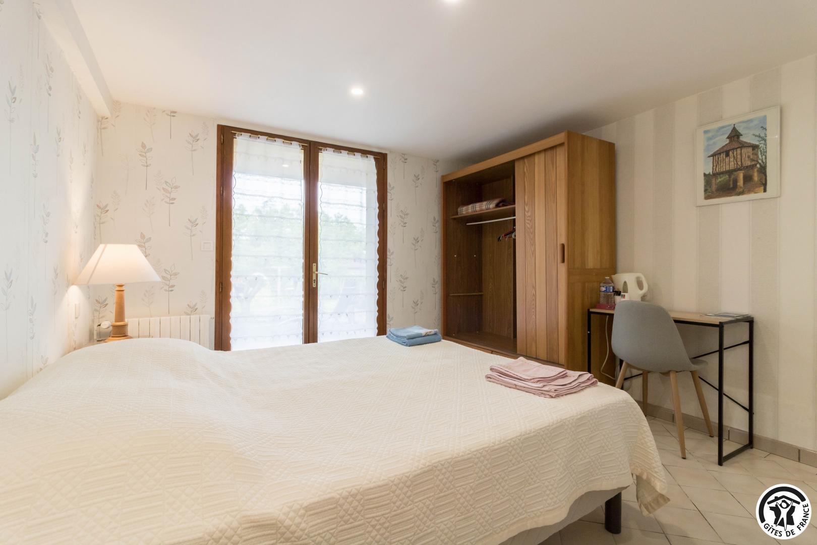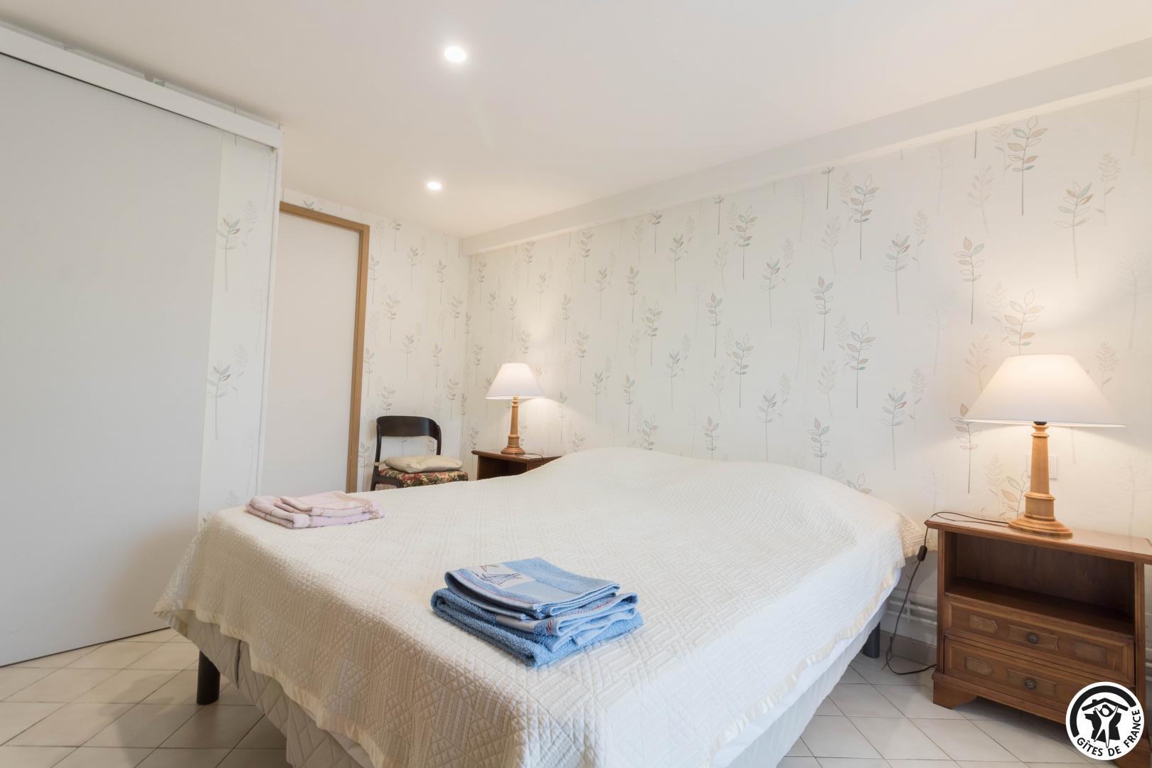 En la planta baja de la casa de la propietaria, accesible desde el exterior, esta habitación familiar ofrece 2 habitaciones separadas (4 camas individuales, 2 de las cuales pueden ser gemelas), cada una con su propio cuarto de ducha/WC. Uno de los dormitorios dispone de un escritorio. El desayuno se sirve en la sala de estar (salón, comedor y cocina equipada), accesible a su vez a los veraneantes. En el exterior, podrá relajarse en la terraza y en el jardín.