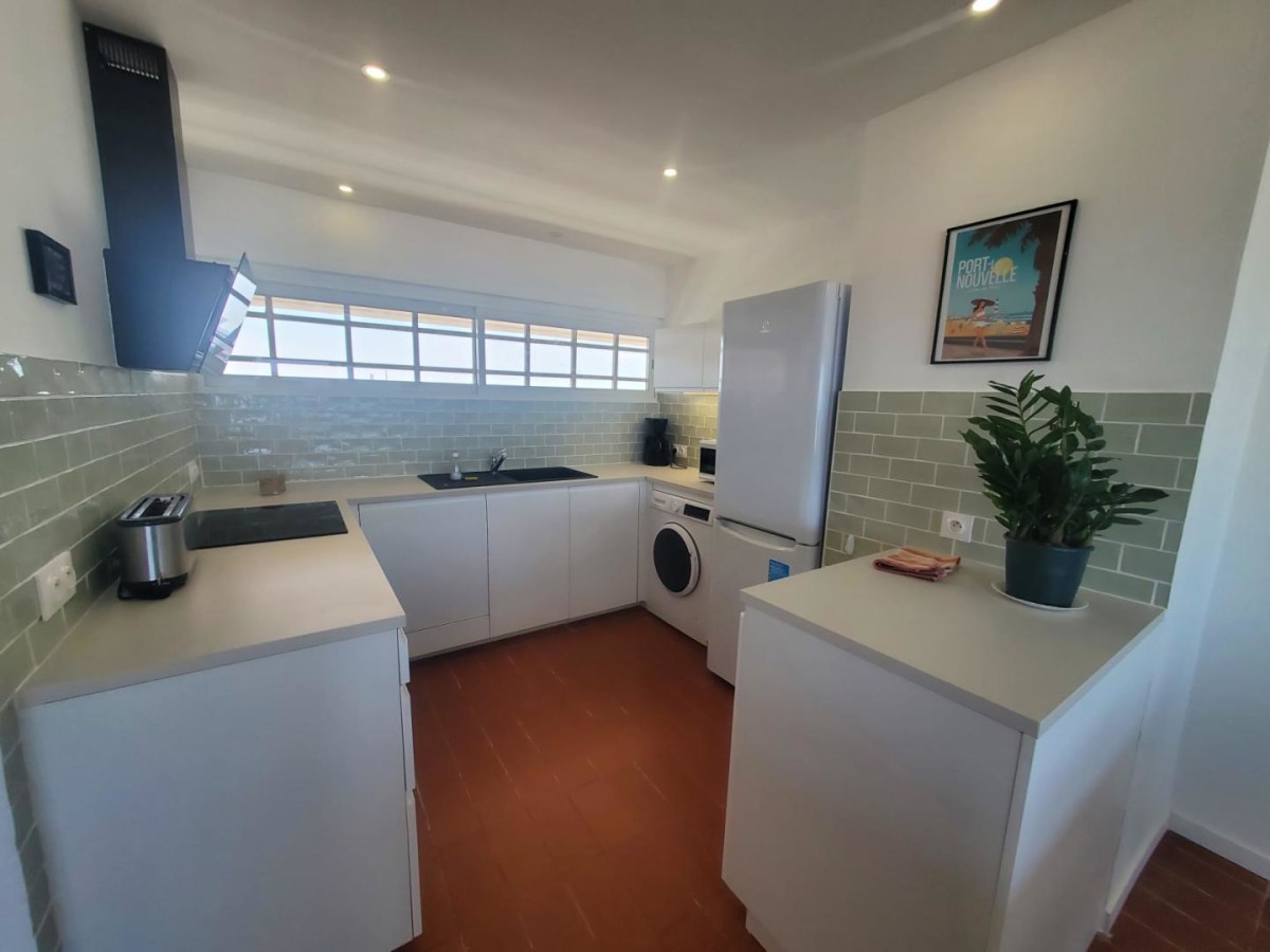 Situé à Port-la-Nouvelle, sur le littoral de l’Aude, ce gîte vous plonge dans une ambiance balnéaire typique du sud. À deux pas de la plage, vous profiterez d’un environnement propice aux sports nautiques, aux balades en bord de mer et à la découverte de la base conchilicole locale. La station, vivante toute l’année, offre un accès privilégié à la Réserve Naturelle de Sainte-Lucie, au canal de la Robine classé au patrimoine mondial de l’UNESCO, et aux vignobles des Corbières. À moins de 30 minutes, ne manquez pas Narbonne et son patrimoine romain, ou encore les abbayes de Fontfroide et Lagrasse. Situé au 3ème étage d’une résidence avec ascenseur. Avec ses grandes baies vitrées, il s’ouvre sur un balcon de 10 m² offrant une vue spectaculaire sur la plage, le port et jusqu’aux falaises de Leucate. – Entrée fonctionnelle : Un espace pour ranger vos chaussures et affaires de plage. – Cuisine ouverte : Entièrement équipée, idéale pour préparer vos repas tout en profitant de la vue. (Cafetière à espresso Malongo et cafetière à filtre) – Séjour lumineux : Espace convivial donnant sur le balcon, parfait pour des moments de partage. – Chambre 1 : Grand lit double (160) avec vue mer et paroi coulissante pour une ouverture sur le salon, créant une ambiance spacieuse. – Chambre 2 : Équipée d’un lit double (140) et d’un lit simple (90), offrant confort et rangements. – Salle d’eau avec douche et WC séparés pour votre confort. Vue panoramique : Admirez les paysages à couper le souffle, des plages de sable fin aux Pyrénées en toile de fond. Accès direct à la plage : Profitez de la mer à quelques pas de votre porte, avec des restaurants et commerces accessibles en quelques minutes à pied. Un parking facile et gratuit est disponible au pied de l’immeuble, avec un accès autonome via un système de boîte à clé. Arrivée en toute autonomie dans le gîte (Consignes transmises par la conciergerie).