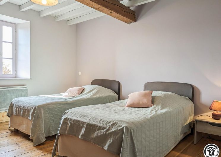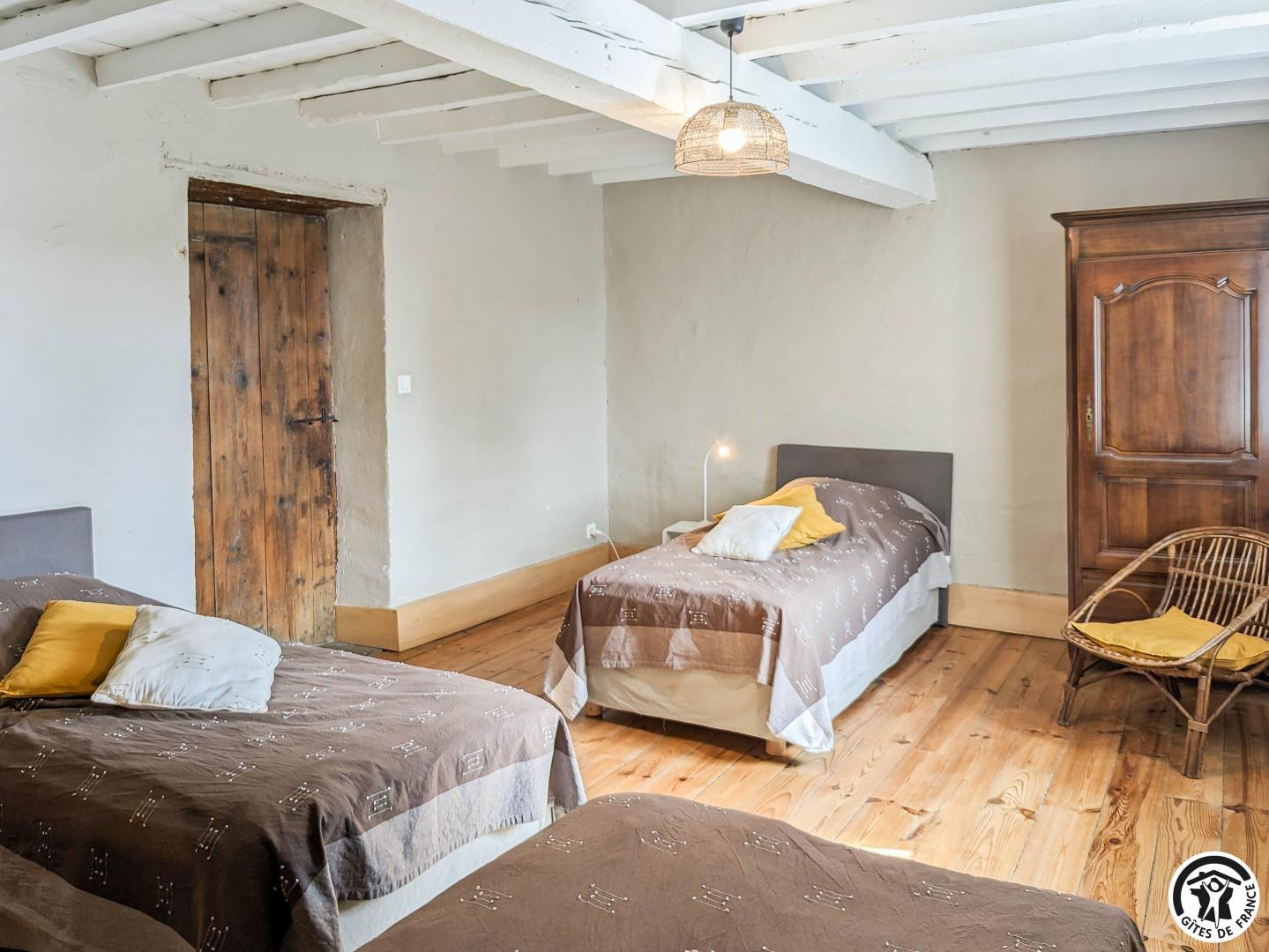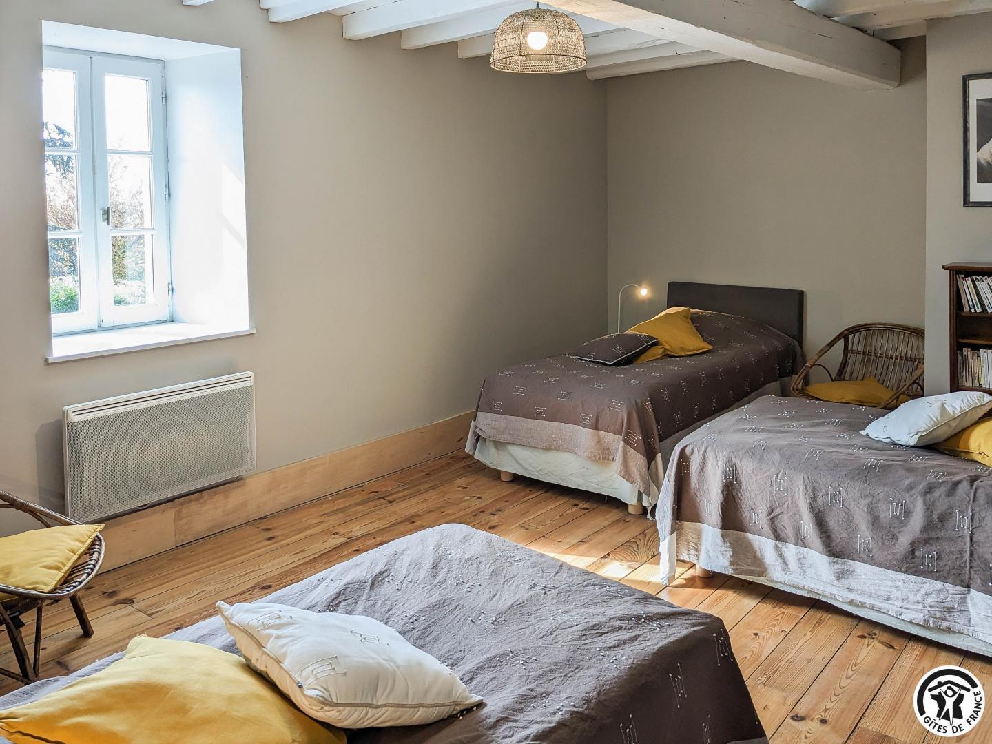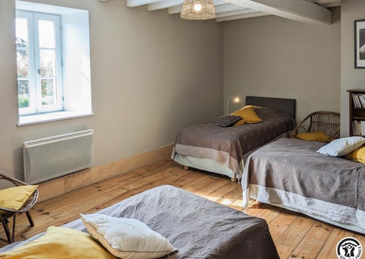 – Primera planta: 3 habitaciones (3 camas individuales 90cm) (2 camas individuales 90cm) (1 cama doble 160cm), cuarto de baño+ducha, WC con lavabo.