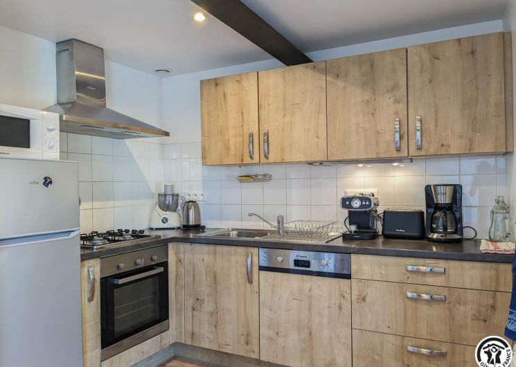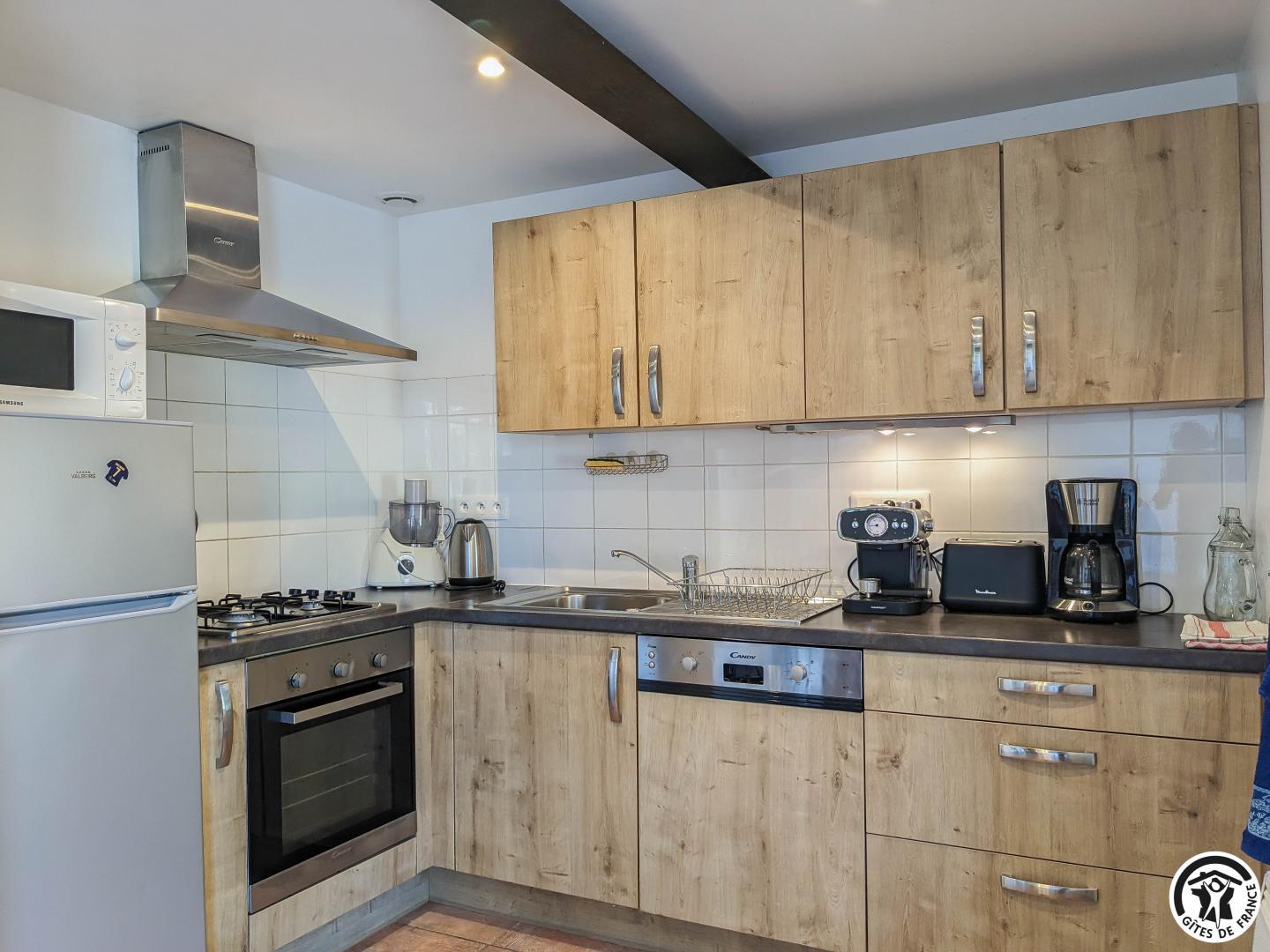 – Planta baja: gran hall de entrada, cocina equipada abierta al comedor con gran ventanal, salón (con chimenea de hogar cerrado), 1 dormitorio (1 cama doble (160 cm)), cuarto de ducha/WC, trastero.
