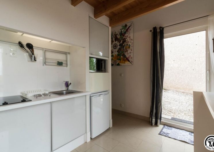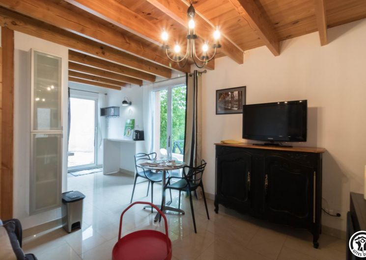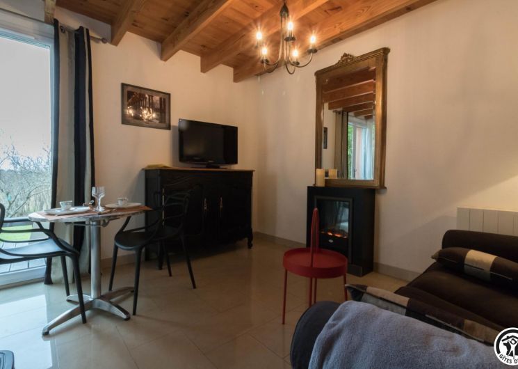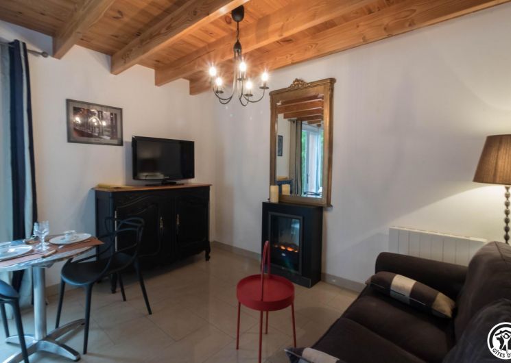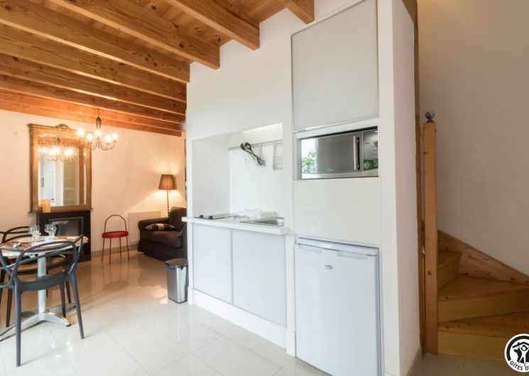 Duplex de 27m2, construit il y a une vingtaine d’année par les propriétaires : rez-de-chaussée : un séjour chaleureux regroupant une cuisine intégrée entièrement équipée, un espace repas convivial et un coin salon propice aux soirées détente. WC indépendant pour plus de confort. Chambre ouverte en mezzanine avec lit double 160 cm, baignée de lumière, attenante à un espace bain à la fois moderne et original comprenant une cabine de douche et une vasque élégante. Chauffage électrique et cheminée électrique. Ventilateur dans la chambre. Pas de lave-vaisselle. Maison des propriétaires sur le même terrain.
