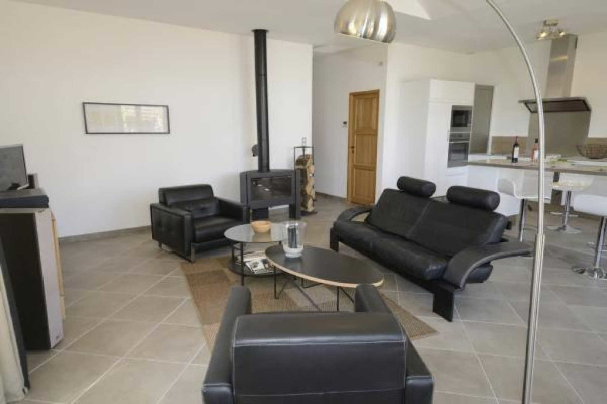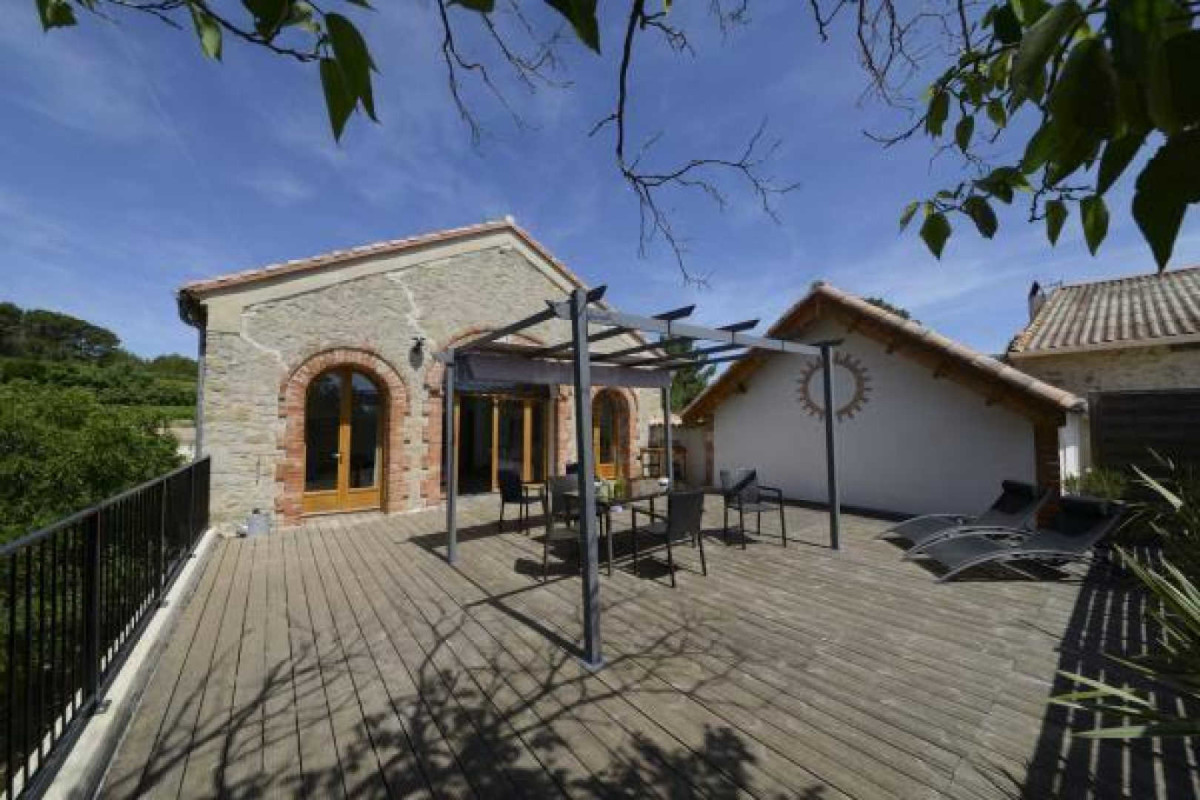 Gîte Le Pigeonnier, de 100 m², situé au 1er étage: grande pièce à vivre (49m²) ouvrant sur terrasse, 2 chambres (l’une avec 1 lit 160X200 cm et l’autre avec 2 lits 90X200 cm), salle d’eau, wc, buanderie. Lave-linge et sèche-linge, TV, chauffage et climatisation inclus, poêle à bois, lits faits, ménage fin de séjour sur demande, équipement bébé sur demande. Profitez de l’espace extérieur : Terrasse (65m²) donnant sur le vignoble, parc commun (1 ha), piscine commune (20X5m) ouverte du 1er/06 au 30/09, salon de jardin, plancha, parking. ATTRAITS TOURISTIQUES : Abbaye de Valmagne à 1km, Bouzigues et Mèze (Etang de Thau) à 7 km, Sète (patrie de Paul Valéry et Georges Brassens), Pézenas (ville de Molière), Montpellier, les plages (Marseillan, Frontignan).