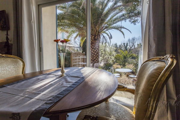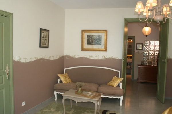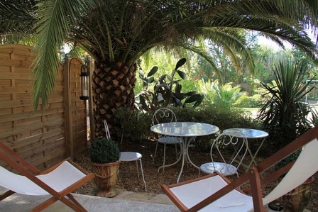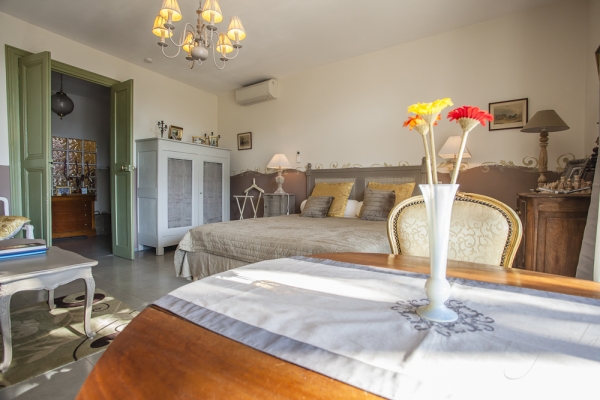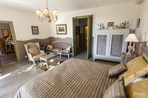 La location de la suite de Sabrina est une véritable suite de 45m2 dans le bâtiment principal avec une terrasse dominant le jardin Méditerranéen.