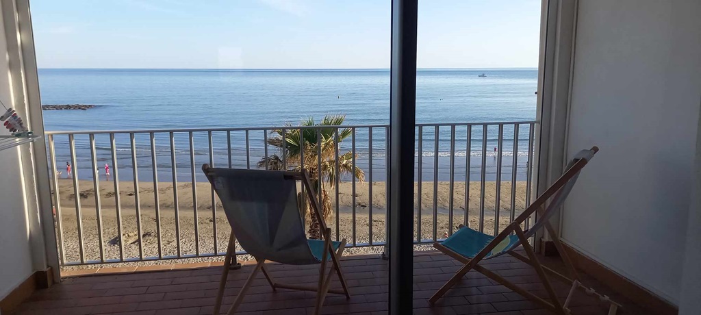Studio-cabine idéalement situé en première ligne, face à la mer et au cœur de la station familiale du Grau d’Agde, port de pêche et de plaisance. Accès direct à la plage sans route à traverser.