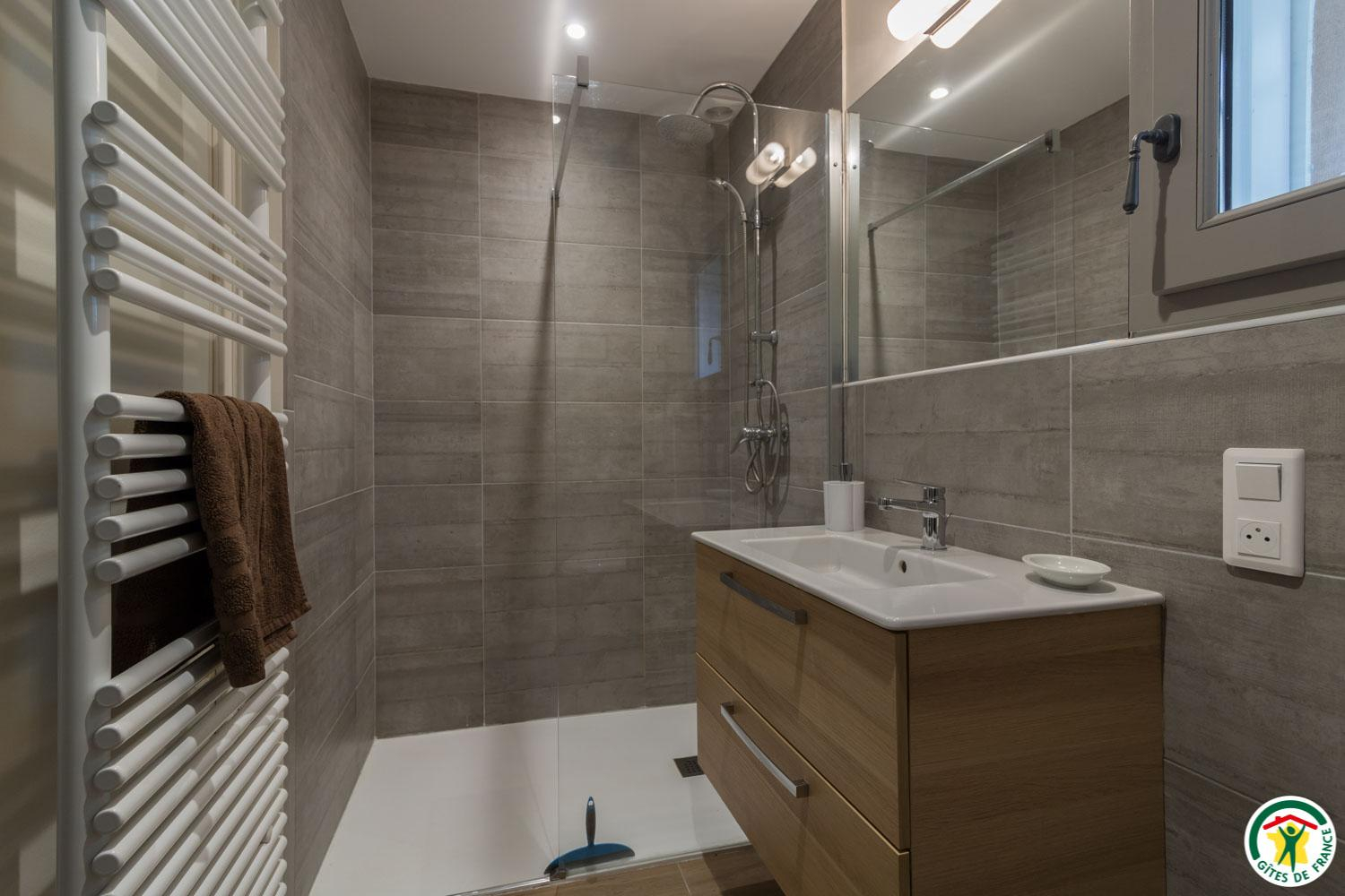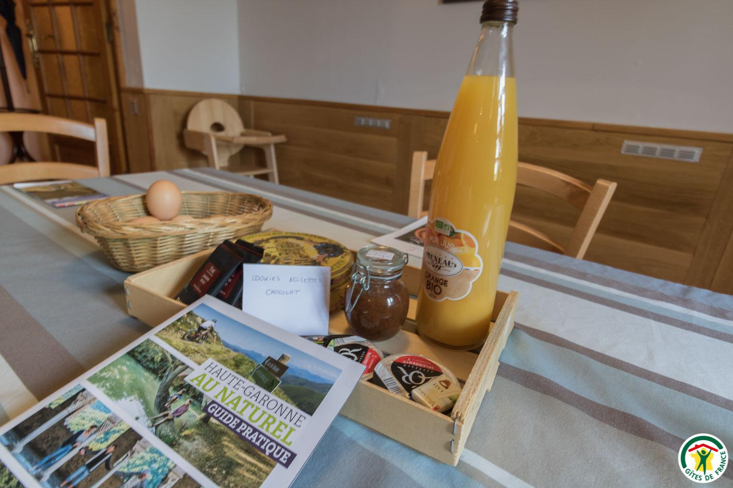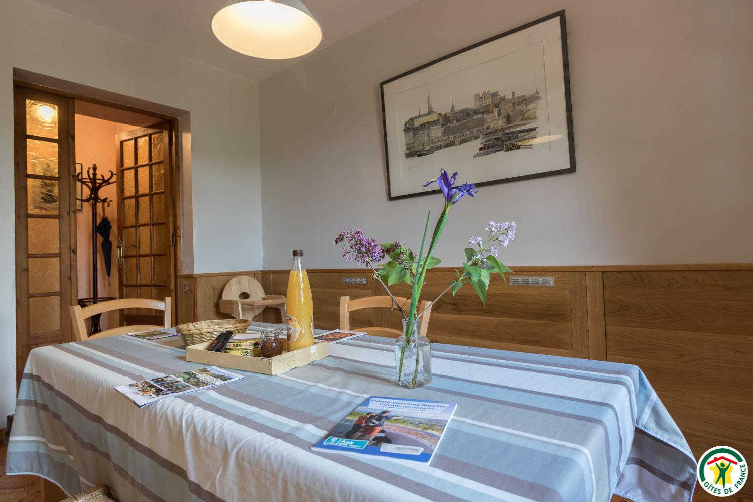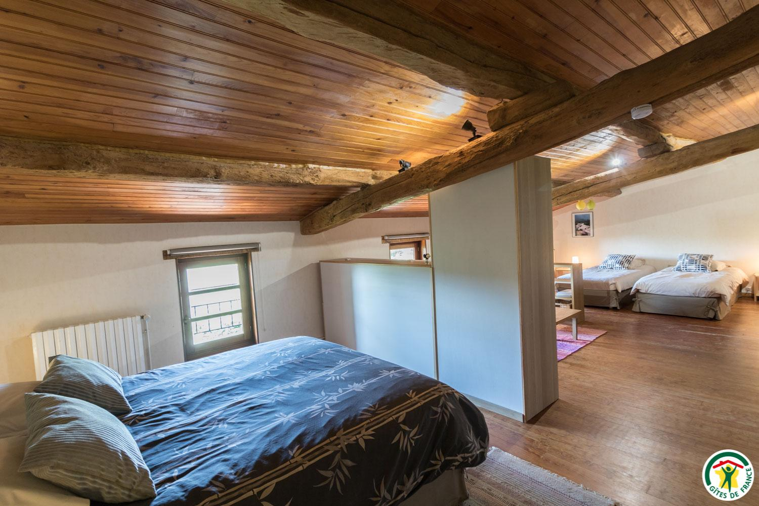 Arriba: gran salón (sofá, TV de pantalla plana, reproductor de DVD, radio HI FI, cama supletoria de 140 cm), gran dormitorio con 1 cama doble de 160 cm y 2 camas individuales de 90 cm, separados por una zona de juegos para niños. WC y lavabo. Calefacción central de gasoil. Muebles de jardín, tumbonas, sombrilla y barbacoa. Esta casa rural es contigua a la casa de los propietarios (pero no tiene vistas). Equipamiento para bebés (cuna y trona). Jardín común, no cerrado. No se admiten animales. Acceso a Internet. Posibilidad de teletrabajo.