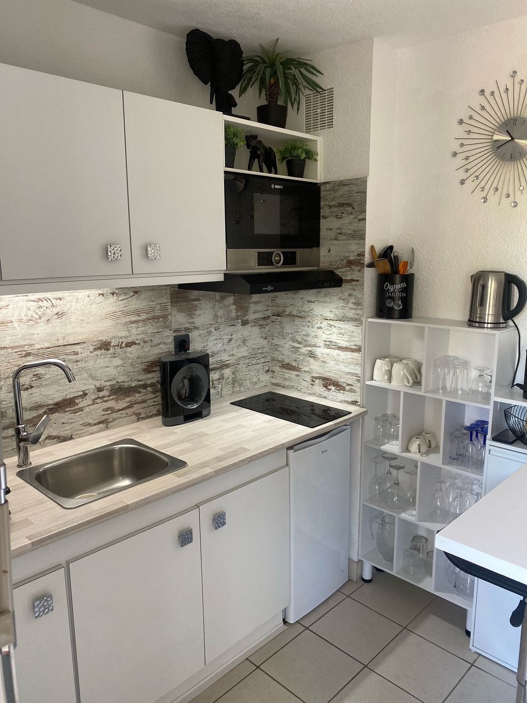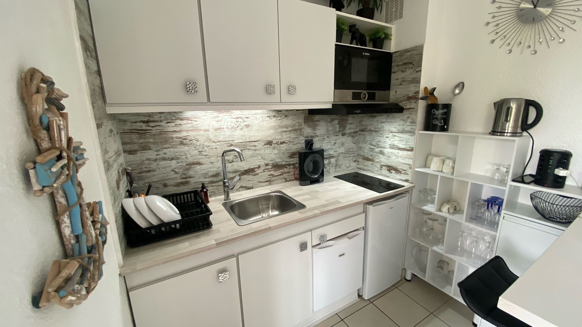 Découvrez ce superbe appartement T2 de 36 m², entièrement rénové avec soin et élégance, idéal pour des vacances reposantes au Cap d’Agde. Situé dans une résidence calme avec de beaux espaces verts, une piscine et un bassin pour enfants, cet appartement bénéficie d’une agréable terrasse couverte pour profiter de moments de détente. Au 2ᵉ étage avec ascenseur, ce logement offre un cadre de séjour confortable et pratique. Un parking privé est à votre disposition, et vous serez à quelques pas seulement du port (100 m), des commerces (200 m) et à 1 km de la plage. Composition de l’appartement : L’entrée mène à une salle d’eau moderne avec WC. Le séjour lumineux est aménagé avec un canapé BZ (140) et s’ouvre sur une terrasse bien exposée. La chambre confortable est équipée d’un lit en 140, tandis que le coin cuisine fonctionnel dispose d’un bar avec tabourets, parfait pour vos repas. Sur la terrasse, une table, des chaises de jardin et une plancha sont à votre disposition pour vos soirées conviviales. Confort et Équipements : Cet appartement peut accueillir jusqu’à 4 personnes grâce à son lit double (140) et son canapé convertible (140). Il est équipé pour rendre votre séjour agréable avec : – Télévision – Équipements de cuisine : micro-ondes, réfrigérateur, lave-linge. Localisation Idéale : Profitez de la proximité immédiate du port à 100 m, des commerces à 200 m, et de la plage à seulement 1 km. Un emplacement parfait pour explorer les richesses du Cap d’Agde et vous adonner à toutes les activités de bord de mer. Informations Pratiques : Animaux acceptés sous conditions. Référence Agence Lovely : CAPI117 Réservez dès maintenant cet appartement situé au Cap d’Agde