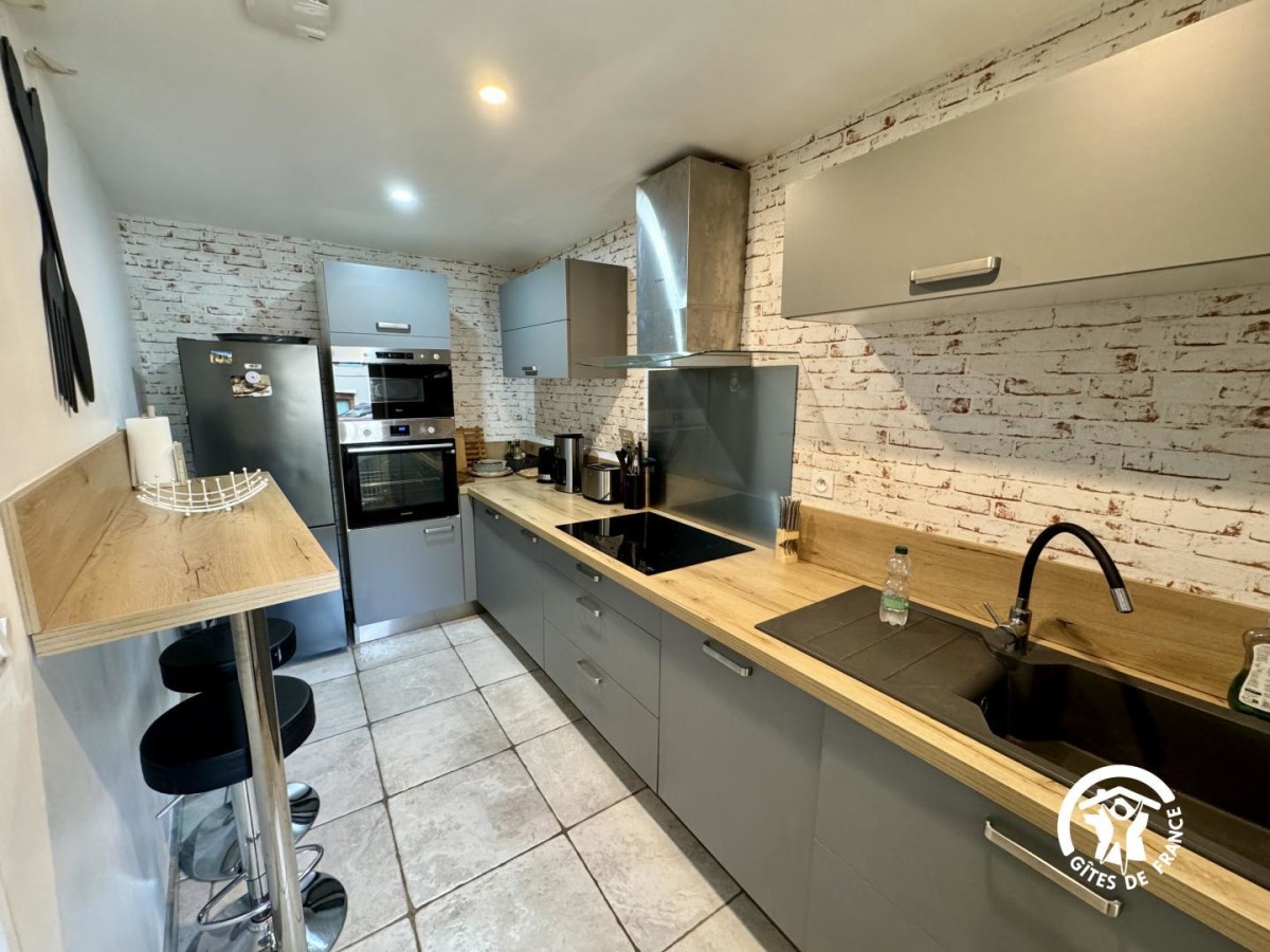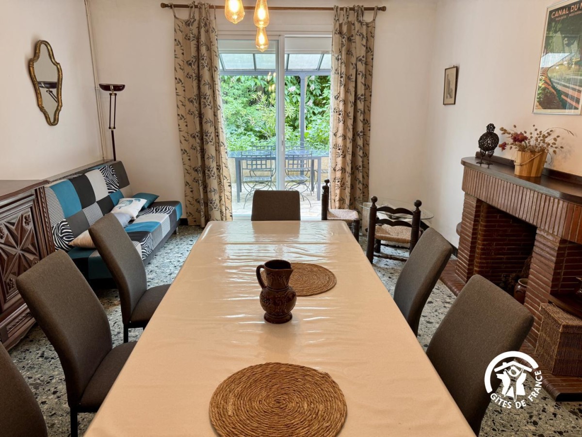 Idéalement située au cœur d’un village authentique du sud de la France, à proximité immédiate du célèbre Canal du Midi et de la majestueuse Cité de Carcassonne, la Maison Delmas vous ouvre ses portes pour un séjour alliant détente, découverte et plaisirs gourmands. Cette maison familiale de caractère a été entièrement rénovée pour offrir un parfait équilibre entre charme de l’ancien et confort moderne. Nichée au bout d’une impasse paisible, elle garantit calme, intimité et sérénité. À l’extérieur, vous profiterez d’un jardin clos sans vis-à-vis, idéal pour se détendre en toute tranquillité. La terrasse avec pergola est parfaitement aménagée pour partager des repas en famille ou entre amis autour du barbecue. Une seconde terrasse, discrètement séparée par un écran végétal, est dédiée à un autre gîte voisin. Pour plus de praticité, une buanderie équipée est à votre disposition, ainsi que deux places de parking gratuites avec borne de recharge pour véhicules électriques. L’arrivée est facilitée grâce à un accès autonome sécurisé, avec un accueil personnalisé assuré par la propriétaire. Les animaux de compagnie sont les bienvenus, pour que toute la famille puisse profiter du séjour. Depuis la maison, vous pouvez facilement partir à pied ou à vélo longer le Canal du Midi et profiter de balades ombragées, découvrir la Cité de Carcassonne et son patrimoine médiéval exceptionnel, explorer les châteaux cathares perchés dans des paysages spectaculaires, visiter des abbayes chargées d’histoire, profiter de bases de loisirs pour des activités nautiques ou encore savourer la richesse de la gastronomie locale dans les marchés et restaurants typiques de la région. D’une superficie généreuse de 130 m², le gîte dispose de beaux espaces de vie lumineux et peut accueillir de 7 à 10 personnes. La maison est naturellement fraîche et dispose d’une climatisation partielle. Au rez-de-chaussée: – Séjour avec un salon avec TV et canapé convertible, une cuisine toute équipée (four, micro