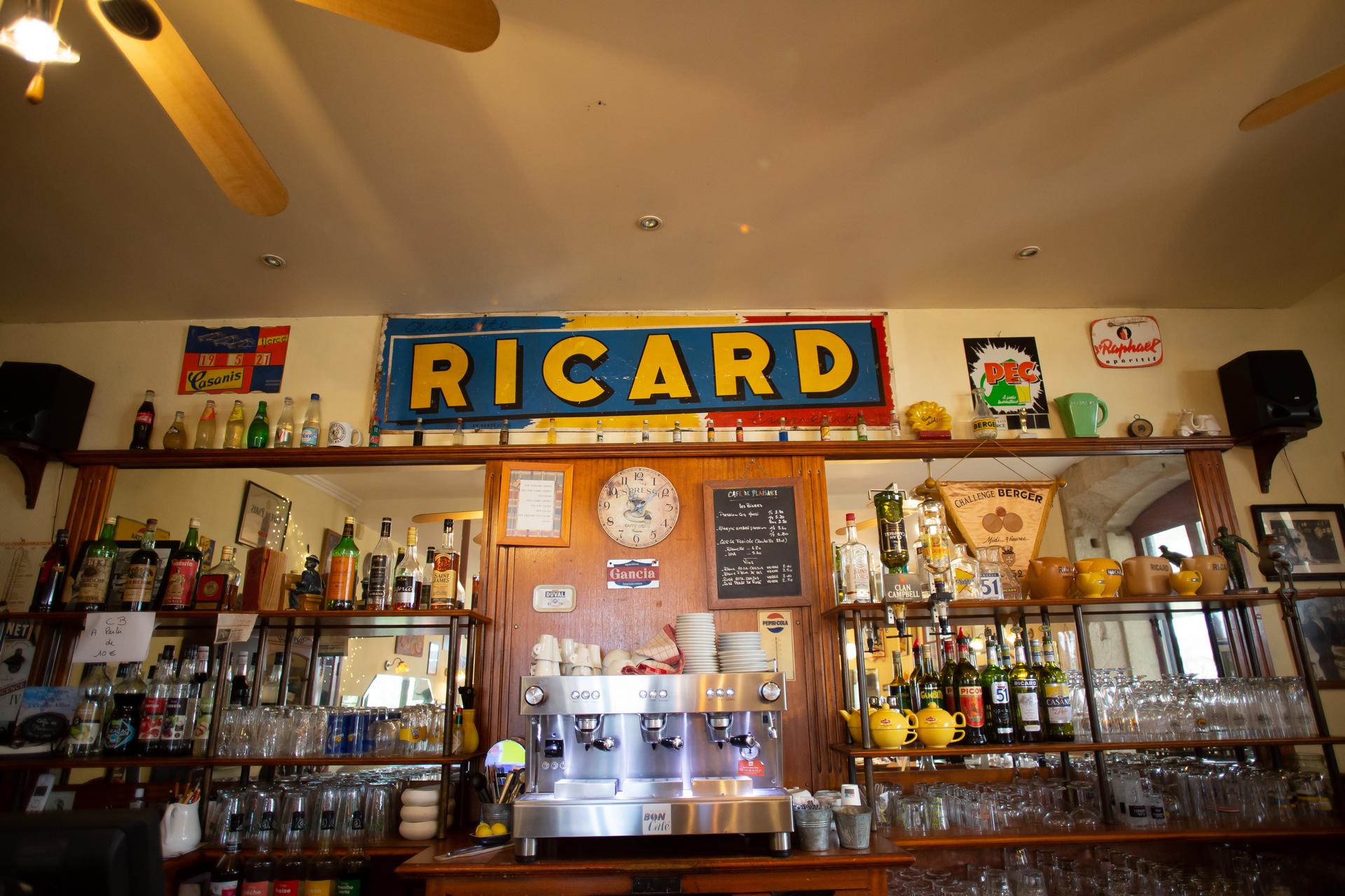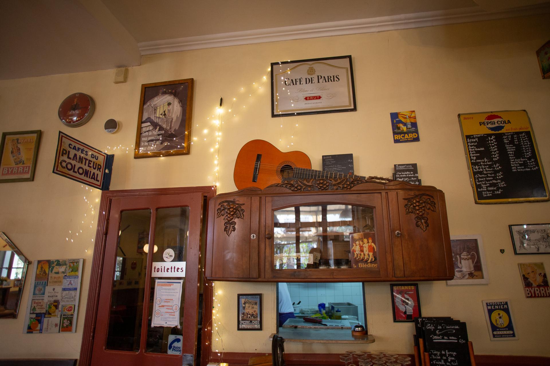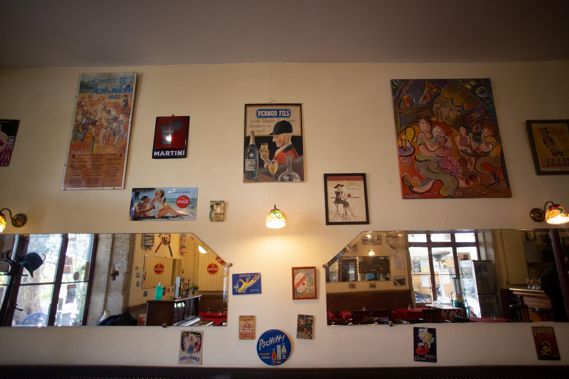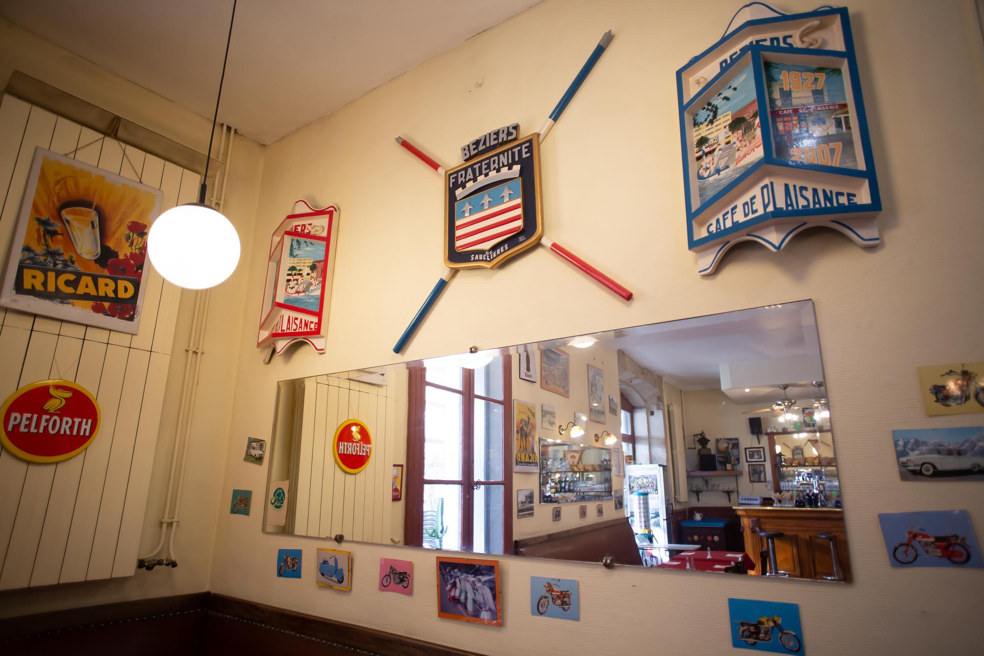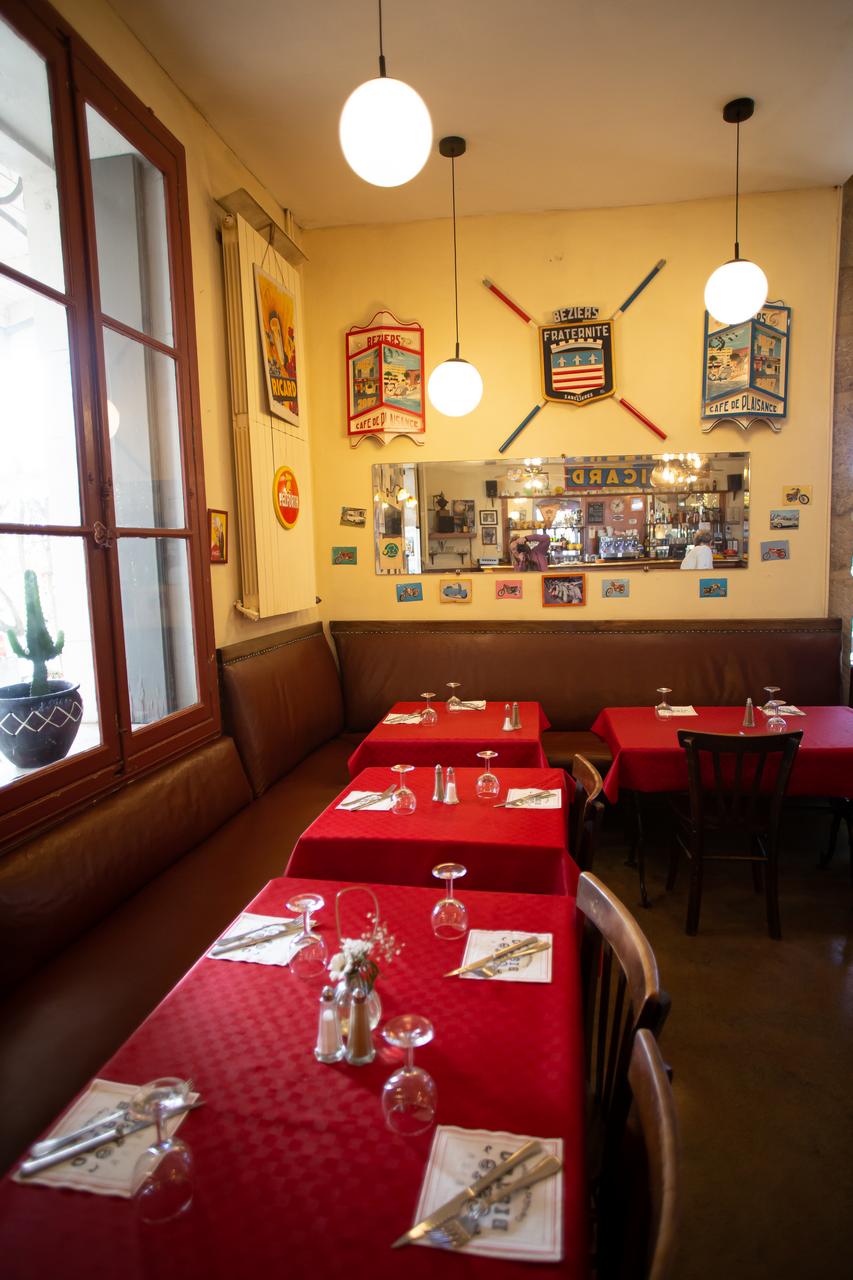 Ambiente típico de guinguette de principios de siglo. La terraza, plantada de plátanos centenarios, da al Canal du Midi. En el interior, un mostrador de madera, grandes bancos y grandes espejos dan al local un aire de bistró retro.