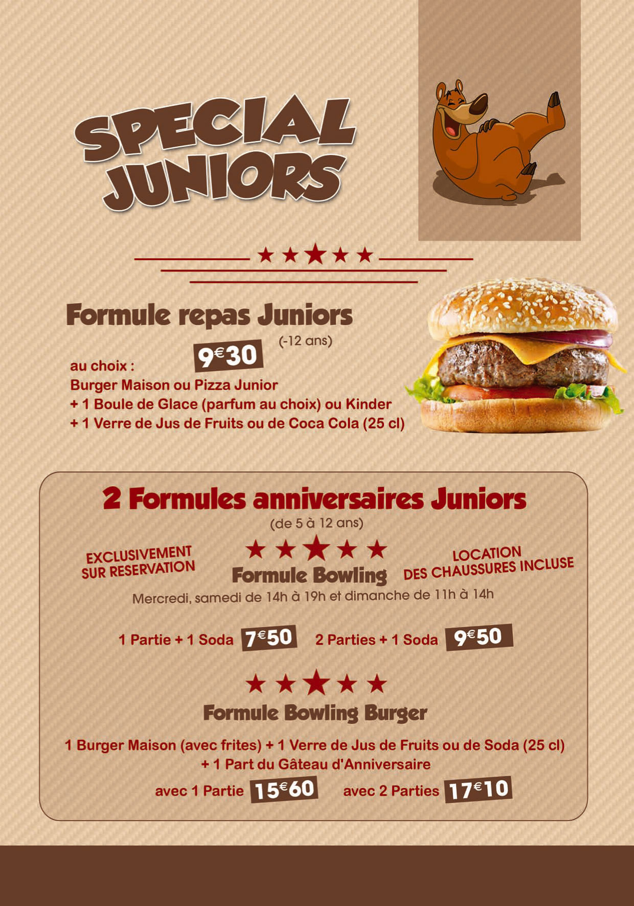 Economisez avec la formule package (bowling+restaurant)+option dessert.