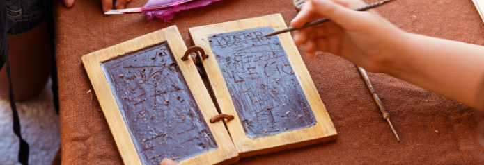 Atelier parent-enfant, à partir de 8 ansEn écho avec l’exposition « Héritage, Traces & Mémoires » de Robert Lobet, Avis à tous les bricoleurs en herbe, découvrez les outils et supports d’écriture de l’Antiquité et fabriquez le vôtre !