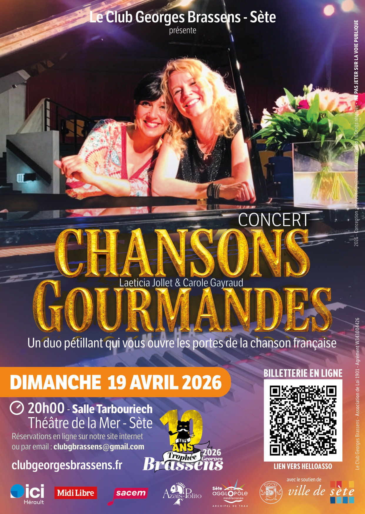 Le duo pétillant « Sucrée-Salée » vous ouvre les portes de la grande chanson française.Avec Laeticia Jollet au piano et Carole Gayraud au chant, elles nous proposent un voyage chaleureux où se mêlent émotion, humour et énergie. Leur complicité apporte une touche cabaret qui donne un souffle nouveau aux classiques.Au fil du concert, on retrouve avec plaisir les univers de Aznavour, Nougaro, Legrand, Fugain, Anne Sylvestre, Maurane, Michel Berger, Nicole Croisille, et bien d’autres qui ont marqué nos mémoires. Des ballades qui touchent droit au cœur aux morceaux plus rythmés qui donnent envie de battre la mesure, tout est interprété avec élégance et authenticité.Plus qu’un simple récital, c’est une parenthèse gourmande, pleine de charme et de surprises, où chaque chanson est servie comme une petite douceur. Un moment convivial, vivant et accessible à tous les amoureux de la chanson française.