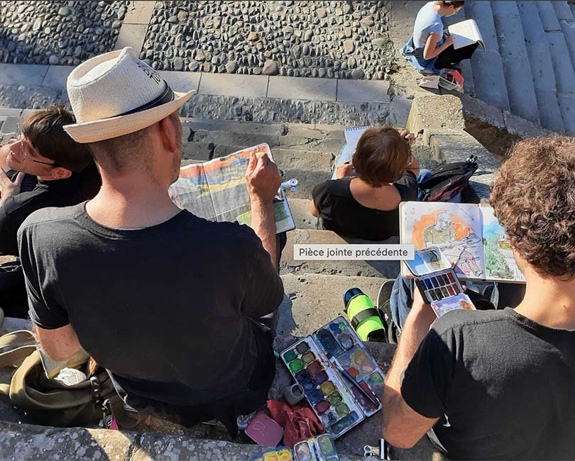 Les Urban Sketchers Vincent Desplanche, Olivia Marcus et Luc Périllat vous dévoilent les secrets du croquis urbain lors d’ateliers destinés à tous ! Une expérience formatrice et poétique pour affûter vos crayons et votre regard sur le canal du midi.
