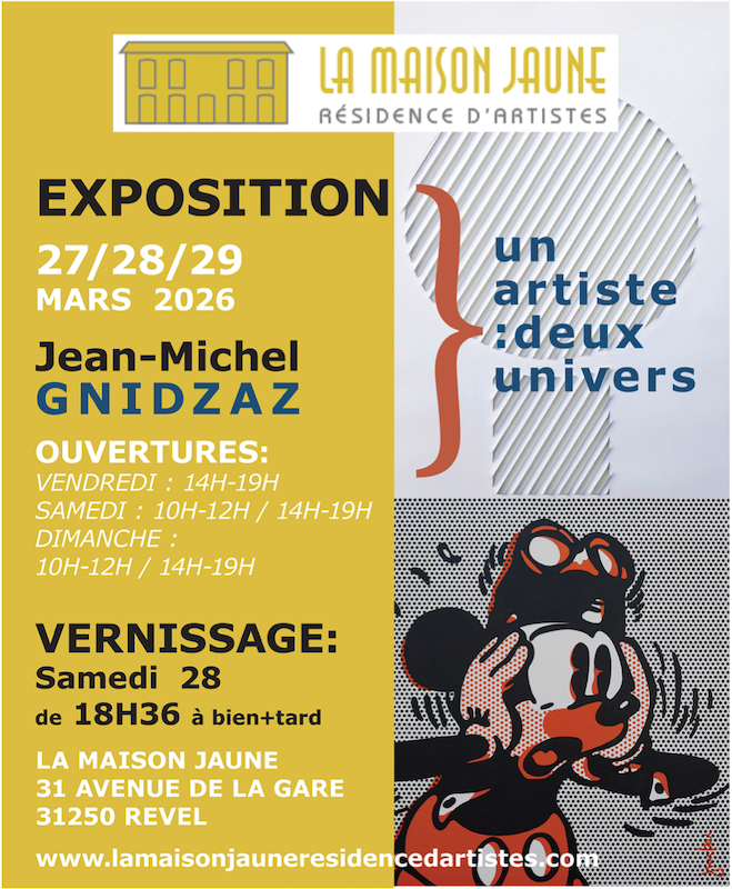 La Maison Jaune vous propose 3 jours d’exposition « Un artiste, deux univers » de l’artiste Jean-Michel GNIDZAZ.