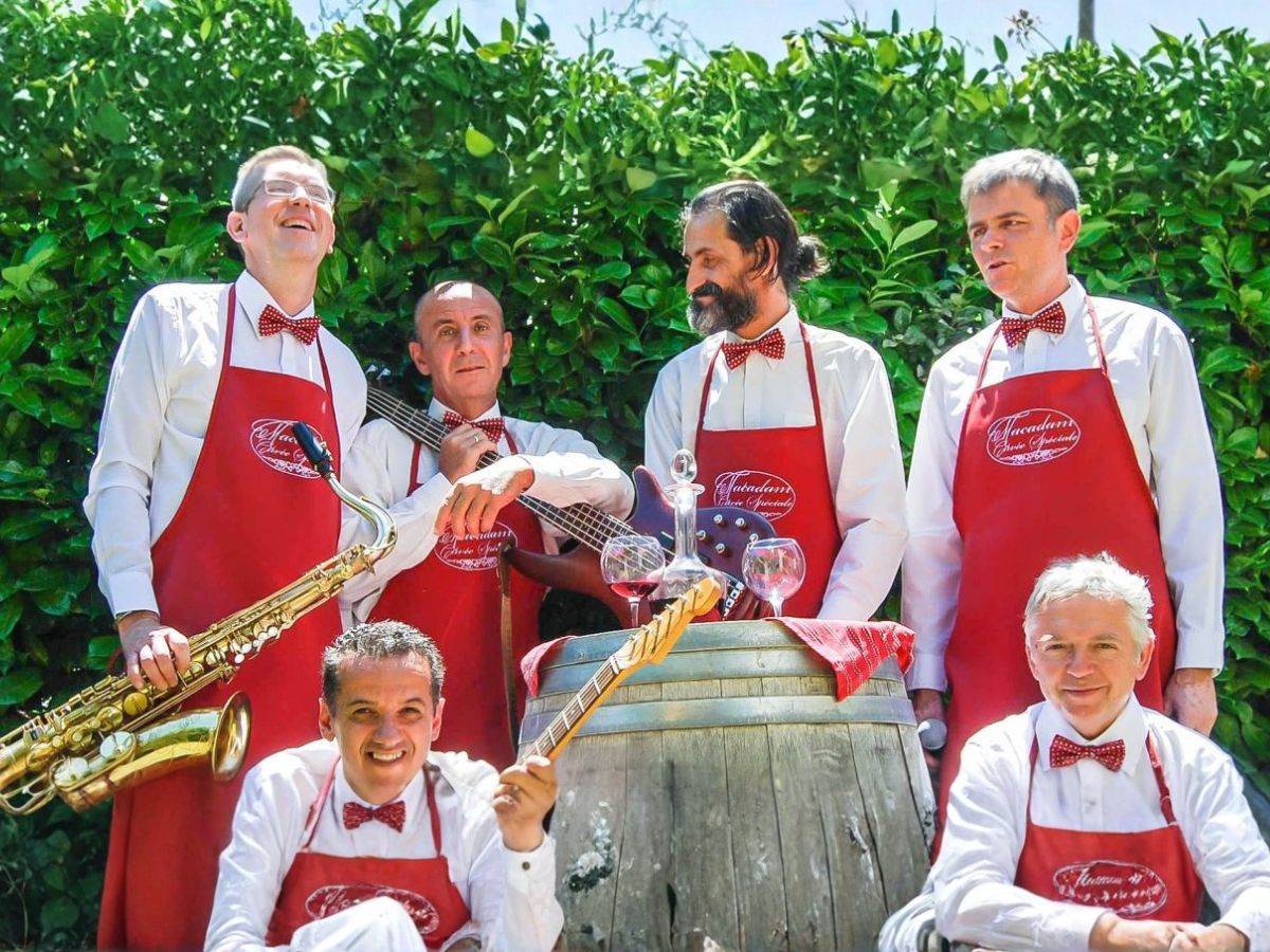 Orchestre électrique déambulatoire avec chants, guitare, sax, trombone, basse et batterie, Macadam Music vous propose une vision moderne de la musique de rue ! Venez retrouver leurs reprises de célèbres hymnes, qui vous feront à coup sûr danser, dans une ambiance festive et aux allures… de sommeliers bien évidemment !